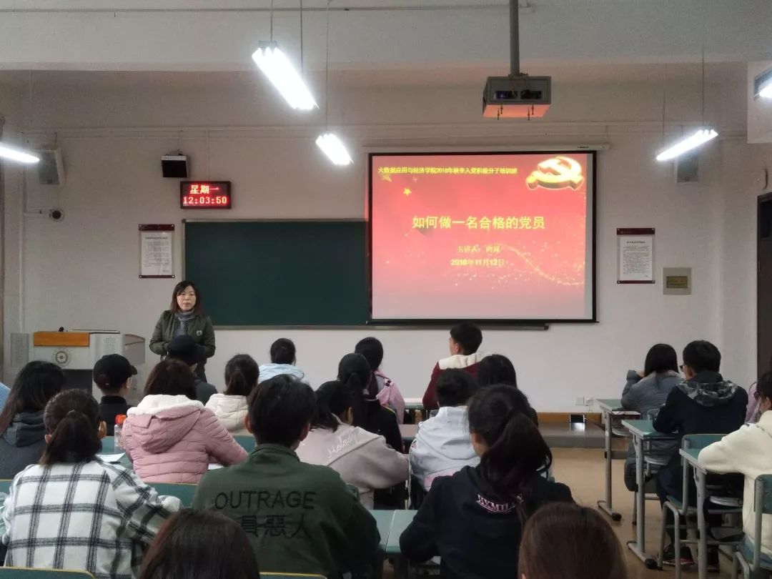 为拉近新一级入党积极分子与党组织的距离,督促入党积极分子在思想上入党, 11月12日中午,公司党委副书记向岚在明德楼319教室为入党积极分子班全体成员上了题为“如何成为一名合格的党员” 的党课。