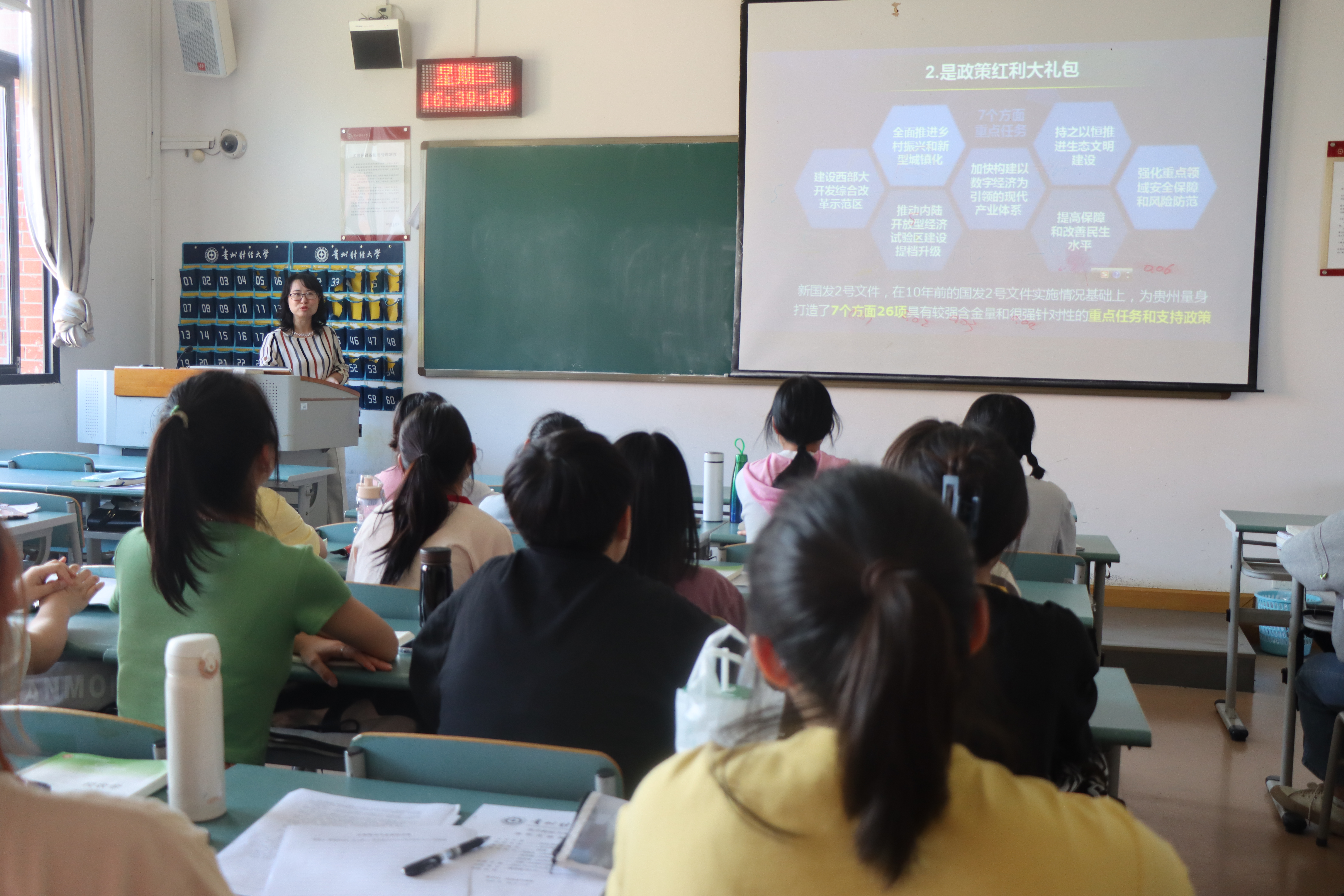 杨杨经理在解读新国发2号文时,以“为什么是贵州”为主题,围绕新国发2号文中党中央、国务院赋予贵州的全新战略定位,从脱贫攻坚、综合实力、开放格局、数字经济、环境质量、人民生活六大方面向员工们详细阐述了党中央、国务院选择贵州的依据,解释了新国发2号文释放的政策红利,并就贵州如何贯彻落实新国发2号文文件精神,实现在新时代西部大开发上闯新路提出了一些建议。