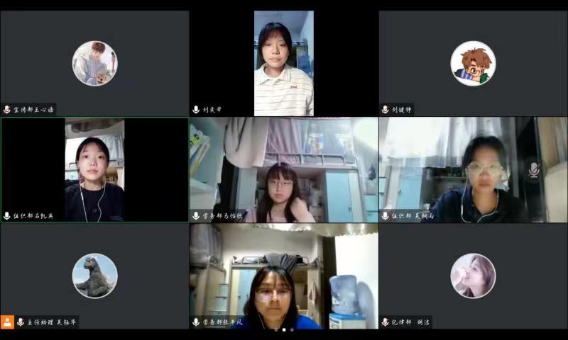 面试开展前,各部门积极做好面试准备工作,经过多次网络测试无误后,开始了线上面试招新工作。面试过程中,各部门负责人通过问题提问,对面试者进行评分并向面试者介绍各部门的职能。面试结束后,党建中心召开了总结会议,通过筛选,确定了各部门招新人数及名单。
