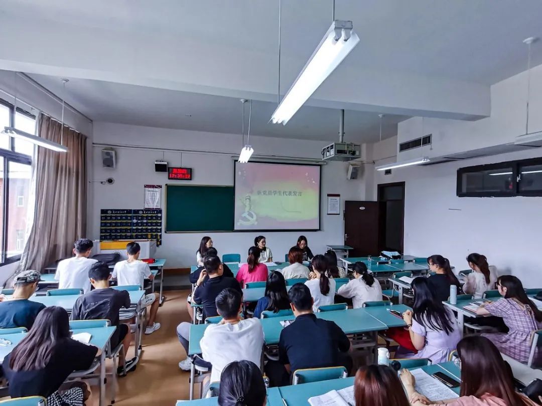 在宣誓结束之后,董婵老师作为党员教师代表进行发言。传达了对新党员同志的祝贺和美好祝愿,并指出作为党员和辅导员的同时,要坚持一切为了员工,树立先进榜样,以行动去昭示教师职业的神圣和伟大。