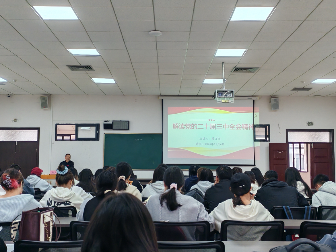 开班典礼结束后,公司党委书记姜友文以《解读党的二十届三中全会精神》为主题授课,他从全会整体情况、深入学习领会习近平总书记重要讲话精神、全面准确理解进一步全面深化改革的重大举措三个方面为学员们深入解读。姜友文书记讲到,党的二十届三中全会是新征程上推进中国式现代化的总动员、总部署。作为入党积极分子,要认识到党的二十届三中全会是关键时期的一次十分重要会议,是新征程上让改革进行到底的动员令,是进一步全面深化改革的路线图,大家要充分利用在校时间,不断夯实专业知识,积极参加社会实践,提升综合素质,以实际行动践行全会精神。