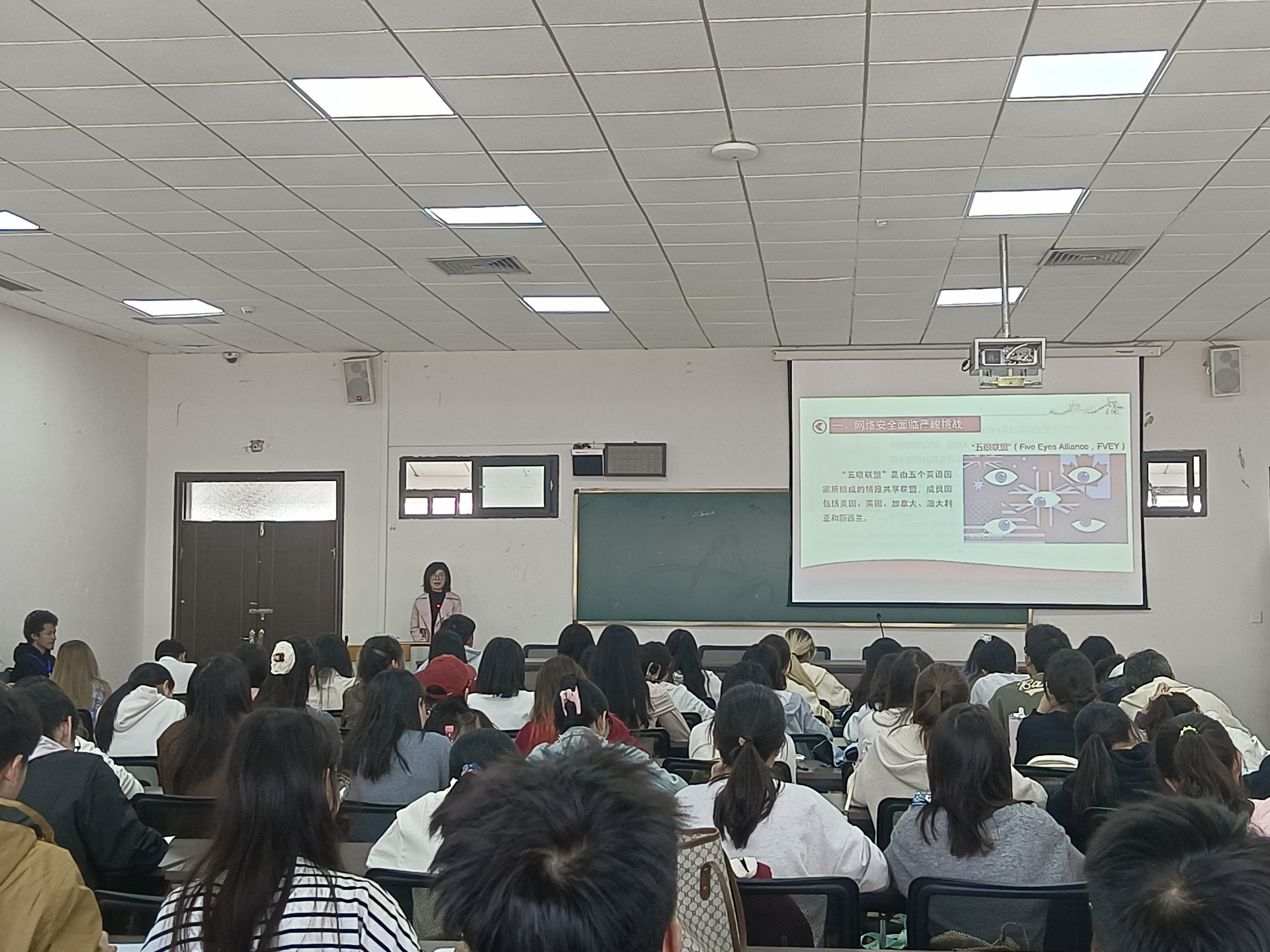 付琳老师指出,在信息飞速发展的今天,保密至关重要,它是守护国家安全、维护企业竞争力、保障个人权益不受侵害、避免因信息泄露引发混乱和损失的关键要素。付琳老师通过一系列真实案例,深入浅出地向同学们展示了保密工作的严峻形势。这些案例让在场的每一个人深刻意识到,保密国家秘密不应只是口号,更应是深入骨髓的责任。紧接着,在谈及如何增强保密意识时,付琳老师提出了多条实用建议,在网络社交日益频繁的当下,我们要时刻注意信息的传播范围,以实际行动维护国家安全。