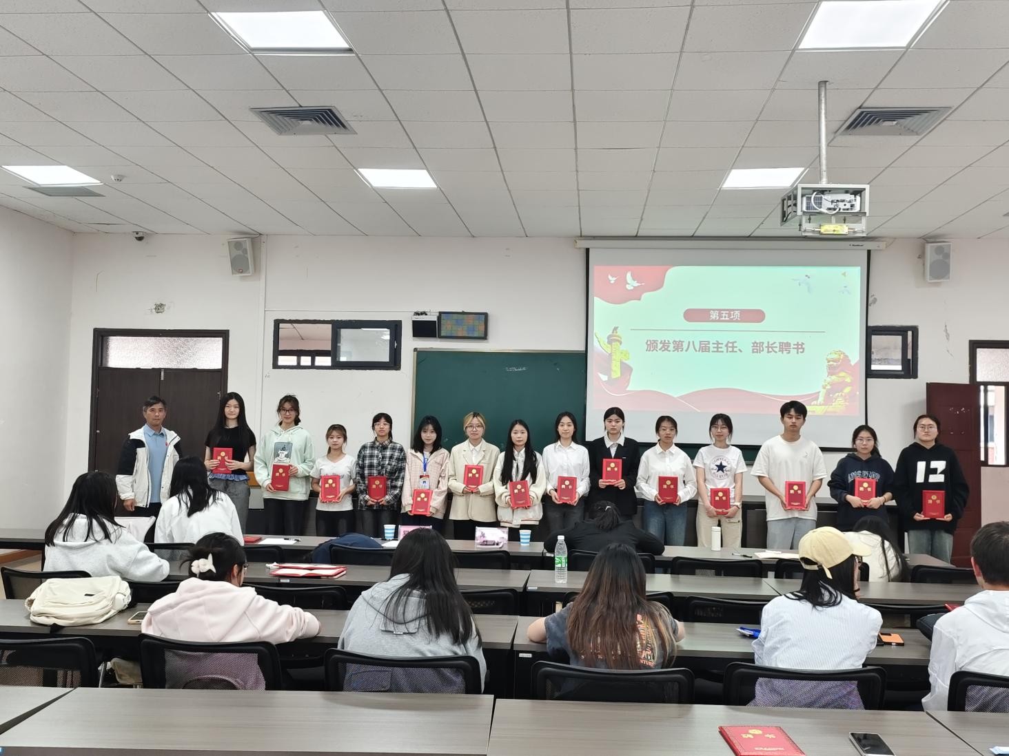 大会开始,由主持人开始热场后,主任团竞选环节正式开始。候选人依次登台,围绕组织发展规划、成员培养方案等内容,以清晰的思路、务实的举措阐述竞选理念。紧接着,部长竞选有序展开。各部门候选人结合部门职能,针对活动策划、宣传推广、内部管理等方面提出具体规划,展现出扎实的工作能力与积极向上的精神风貌。经过激烈角逐、评委老师和三位现任主任们的打分,新一届主任脱颖而出同时确定新任部长人选。随后阳喜书记向新当选成员表示祝贺,勉励大家勇担使命、开拓进取,着重强调团队协作与责任意识,并从专业角度为组织发展建言。同时,他也肯定了未竞选成功部员的勇气与热忱,期待大家持续奋进。随后,在热烈掌声中,新老部长、主任完成交接仪式,聘书的传递标志着责任与使命的接力传承。
