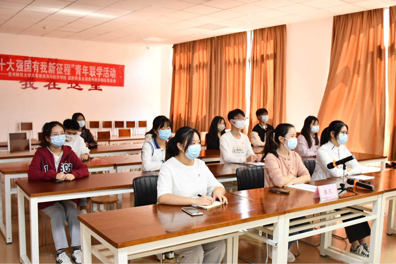 会议开始,贵安新区税务局团支部书记赵雪伟向公司青年传达学习二十大报告主要精神。公司团委书记潘凡介绍了公司各组织基本概况,并围绕学习宣传党的二十大展开叙述。接下来,贵安新区税务局青年理论学习小组成员代表与公司3名青年代表围绕该主题进行了发言,讲述了青春是用来奋斗的、青春是用来创造的、青春是用来担当的,表达了青年应不忘初心、不负青春。随后贵安新区税务局青年理论学习小组与公司青年双方成员围绕本次“党的二十大”召开后青年应该如何将“奋进担当,强国有我”的主旋律实施下去展开了讨论。