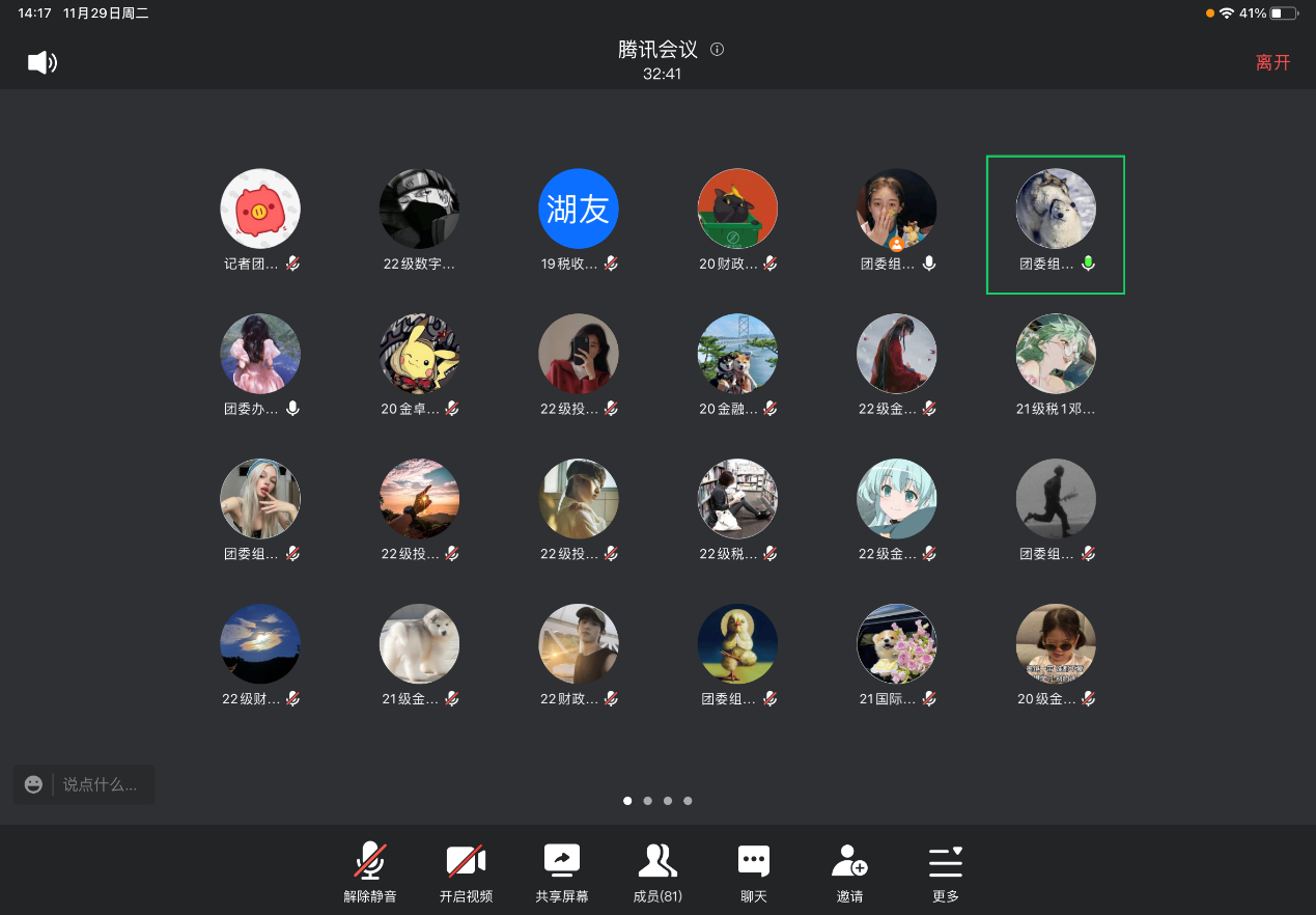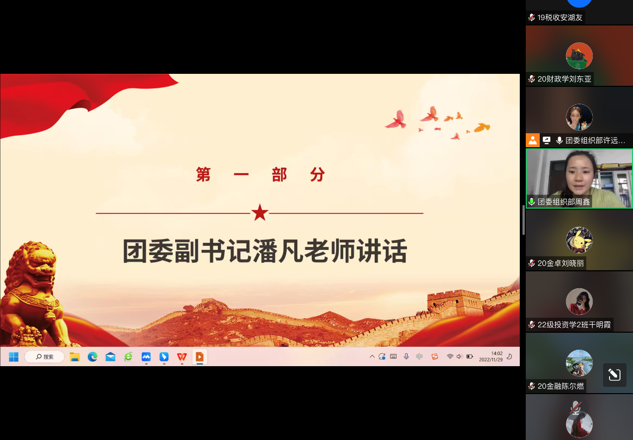 11月29日,304永利集团(贵阳大数据金融公司)团委召开本学期第二次团支部线上例会。公司团委书记潘凡老师、各班团干和团委成员共81人参加此次会议,会议由团委组织部部长许远秀主持。