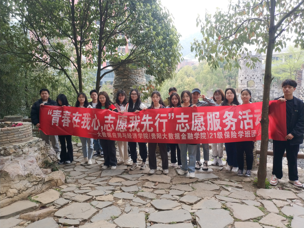 近日,304永利集团(贵阳大数据金融公司)21级财政学专业班、税收学专业1班、保险学专业班、22级数字经济专业1班、投资学2班分别在花溪区溪湖社区、花溪区麦坪镇施庄村、花溪区夜郎谷、贵阳市祈曦老年公寓、花溪公园进行结对共建活动。共60余人参与本次志愿活动。