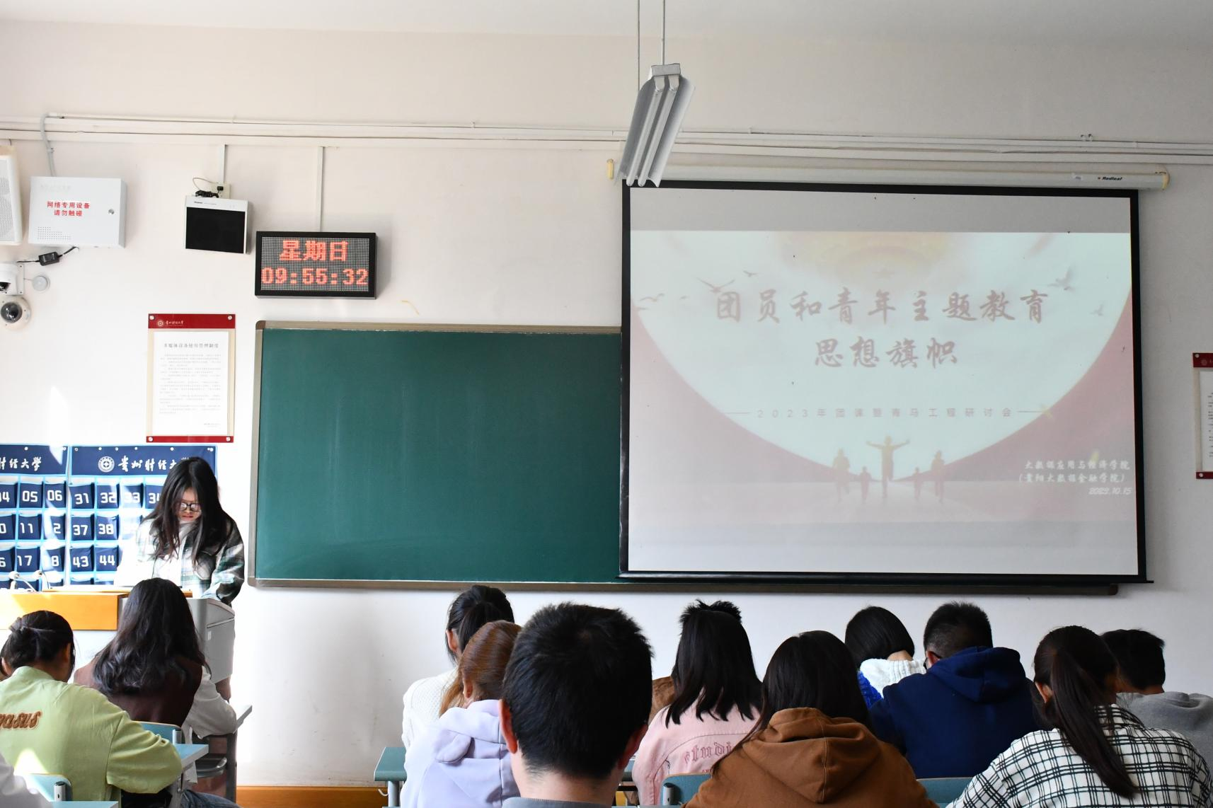 10月15日上午,公司于明德楼220、224、228、312、316教室开展2023秋季团课暨“青马工程”培训主题研讨会,此次研讨会选定主题依次为“学习习近平总书记在同新一届团中央领导班子集体谈话时的重要讲话精神”、“学习习近平总书记五四重要回信精神”、“团员和青年主题教育思想旗帜”、“传爱国时代风,青年筑强国梦”、“奋斗诠释新时代,不负青春不负党”。本次活动共289名同学参与。