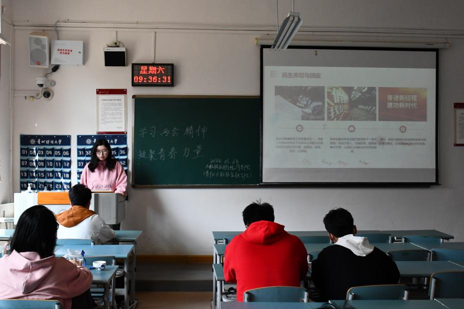 3月23日,在团委工作人员的组织下,同学们开展了以“两会精神”为主题的研讨会。在研讨会中,同学们分为四个大组,用PPT向其他同学讲述了他们所理解的“两会精神”。本次研讨会不仅增强了同学们的团队合作能力,也让同学们在深入学习“两会精神”、认真探讨“两会”新思想、新观点、新论断的过程中,加强了政治理论的学习。