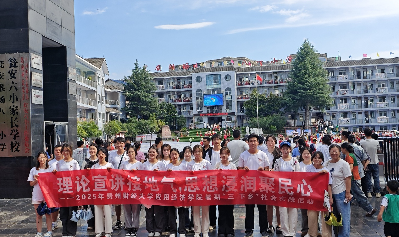 为深入学习贯彻习近平总书记在贵州考察时的重要讲话精神,7月7日304永利集团“逐梦征程” 队前往贵州省黔南布依族苗族自治州瓮安县猴场镇,开展以“理论宣讲接地气 思想浸润聚民心”为主题的实践活动。队员们扎实推进党的创新理论宣传,面向社会群众,开展小规模、互动式、接地气的宣讲。
