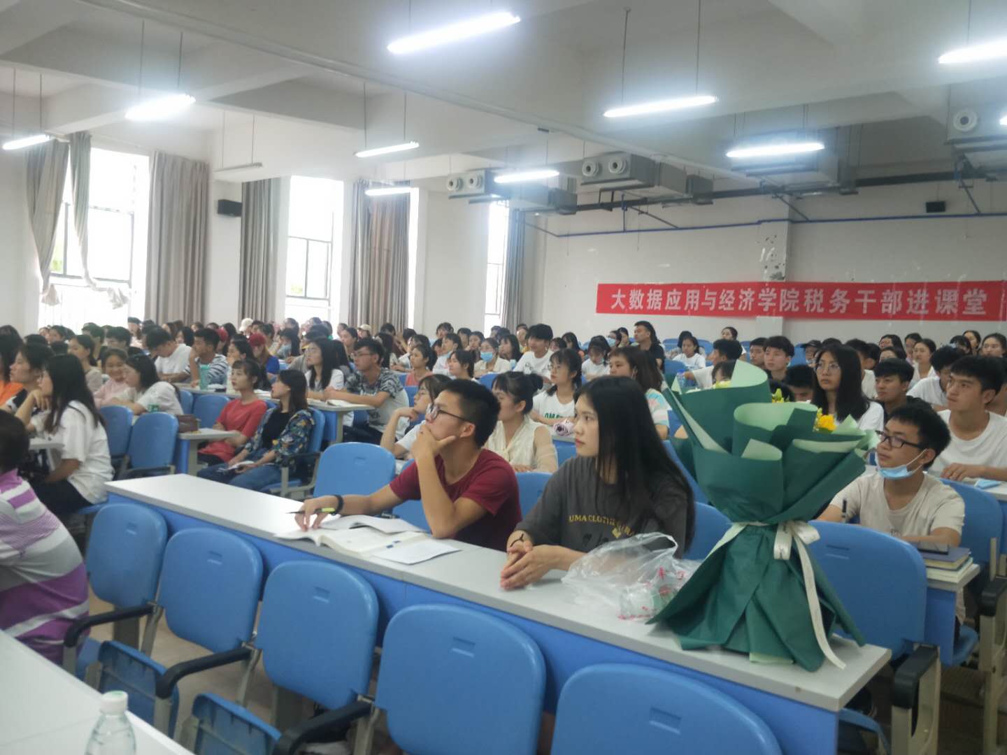 张应帅副局长围绕着现行我国税收管理体制、减税降费背景下我国财税政策、疫情对税收征管带来的挑战三个方面的内容进行了详细分析。演讲中,张应帅副局长辅之以大量实务性案例对涉税工作进行了生动解读。财税系2017级全体员工得以零距离了解税收征管工作的流程与细节,促进了课堂理论知识与涉税实务的结合。