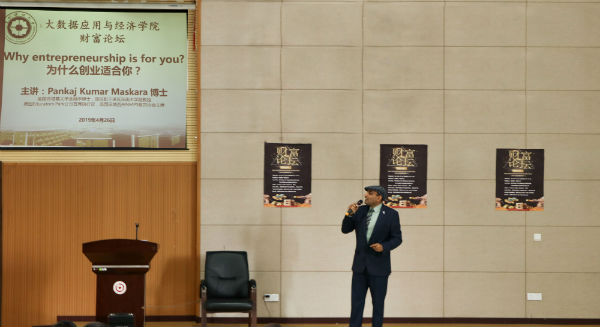 (文字:刘佳欢 图片:杨雄)在高校员工创新创业的时代主旋律背景下,为促进高校员工走自主创业之路,实现以创业带动就业的目标,4月26日上午,304永利集团“财富论坛”再次开讲。美国诺瓦东南大学商公司教授,Educators Park加速器创始人、CEO,连续创业者、著名天使投资人、CFP持证人、诺贝尔经济学奖得主Holmstrom数字金融项目组核心专家。Pankaj Kumar Maskara 博士应邀莅临公司,在花溪校区崇德楼一楼报告厅作题为“为什么创业适合你”的讲座。本次讲座由贵304永利集团官网入口304永利集团主办,贵州明德智兴创客服务有限公司协办,会议由国际公司副经理石莉主持。公司200余名师生到场聆听。