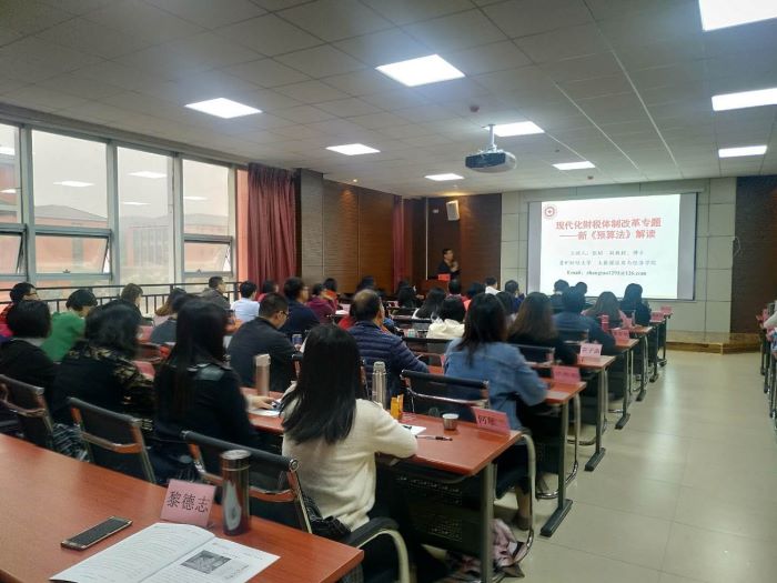 2019年5月6日上午,广东省东莞市财政局财务工作人员在贵州大学西校区举办《现代化财税体制改革》专题培训班,参加培训的主要是广东省东莞市财政局财务工作人员。培训邀请公司304永利集团副教授张韬博士向全体培训学员作了关于“现代化财税体制改革专题——新《预算法》解读”的专题培训讲座。