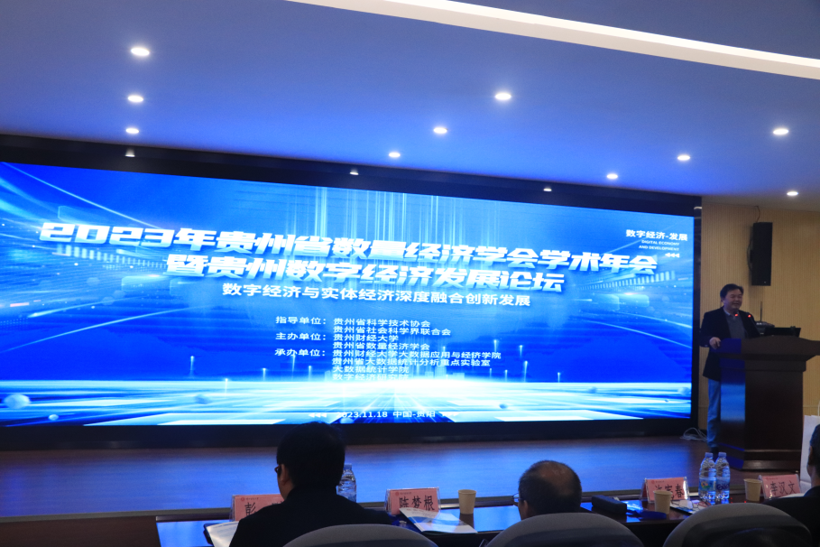 2023年11月18日,由贵州省科学技术协会、贵州省社会科学界联合会指导,贵州省数量经济学会、贵304永利集团官网入口主办,贵304永利集团官网入口304永利集团、大数据统计公司、贵州省大数据统计分析重点实验室、贵304永利集团官网入口数字经济理论与实践省创新团队、数字经济研究院、数字经济系、数字经济创新发展协会联合承办,贵州以学教育科技有限公司赞助的2023年贵州省数量经济学会学术年会暨贵州数字经济发展论坛在贵304永利集团官网入口花溪校区隆重举行,会上专家学者主要交流和研讨了数字经济与实体经济深入融合创新发展等领域的最新成果,为推动贵州数量经济学科发展贡献了智慧。来自北京大学、北京师范大学、西南财经大学、中南财经政法大学、贵州大学、贵304永利集团官网入口、贵州轻工职业技术公司等省内外高校、科研机构的百余位全国各地专家学者及国内外从事经济、管理等跨领域研究的研究者和管理者现场参会。大会由贵州省数量学会理事长白万平教授主持。