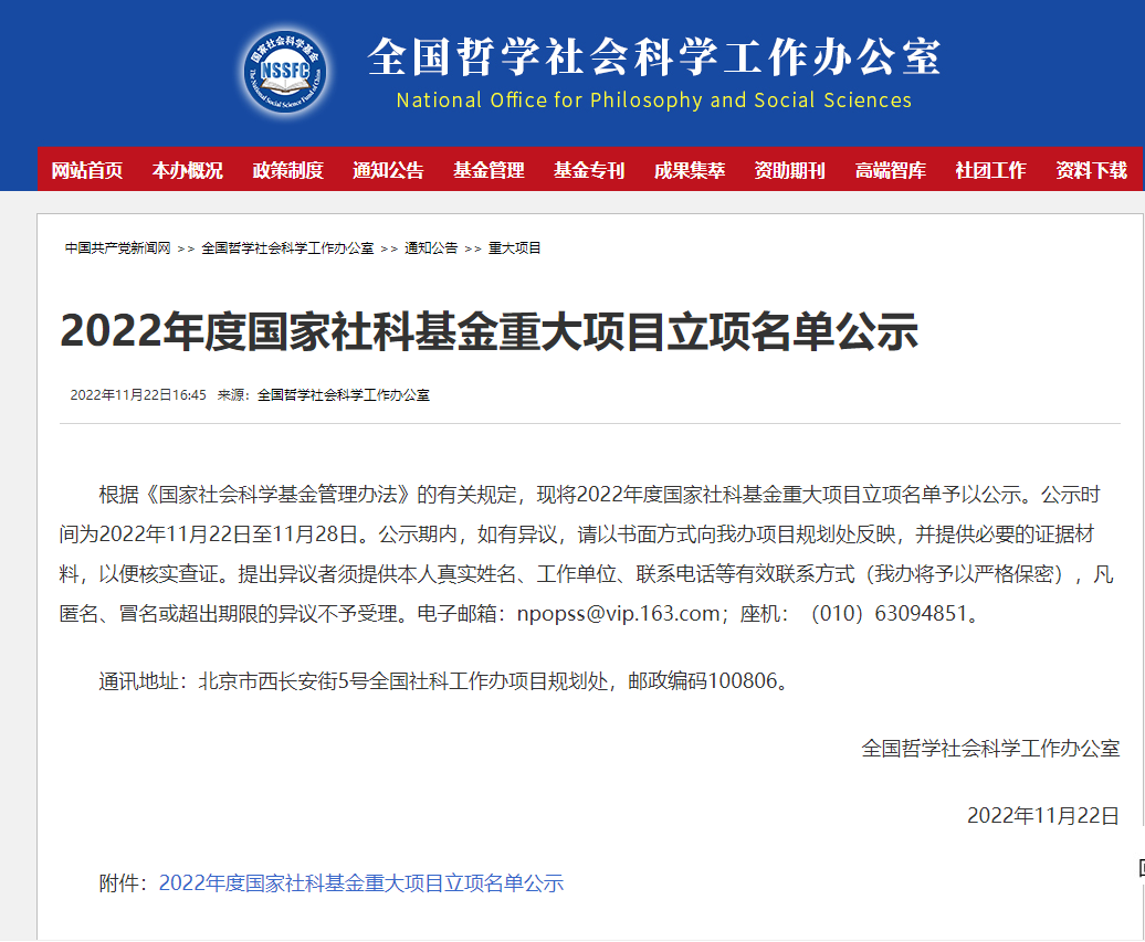 据悉,国家社科基金重大项目是我国哲学社会科学领域级别最高、资助力度最大、权威性最强的项目类别,也是衡量一所高校社科研究实力和科研组织能力的重要标志,备受社会各界广泛关注。2022年度,经过全国哲学社会科学工作办公室严格的资格审查和项目评审,共有340项重大项目获得立项批准。