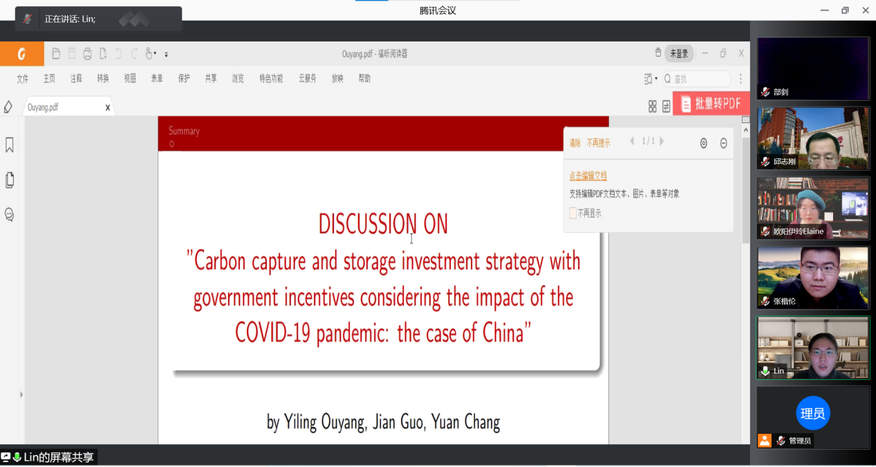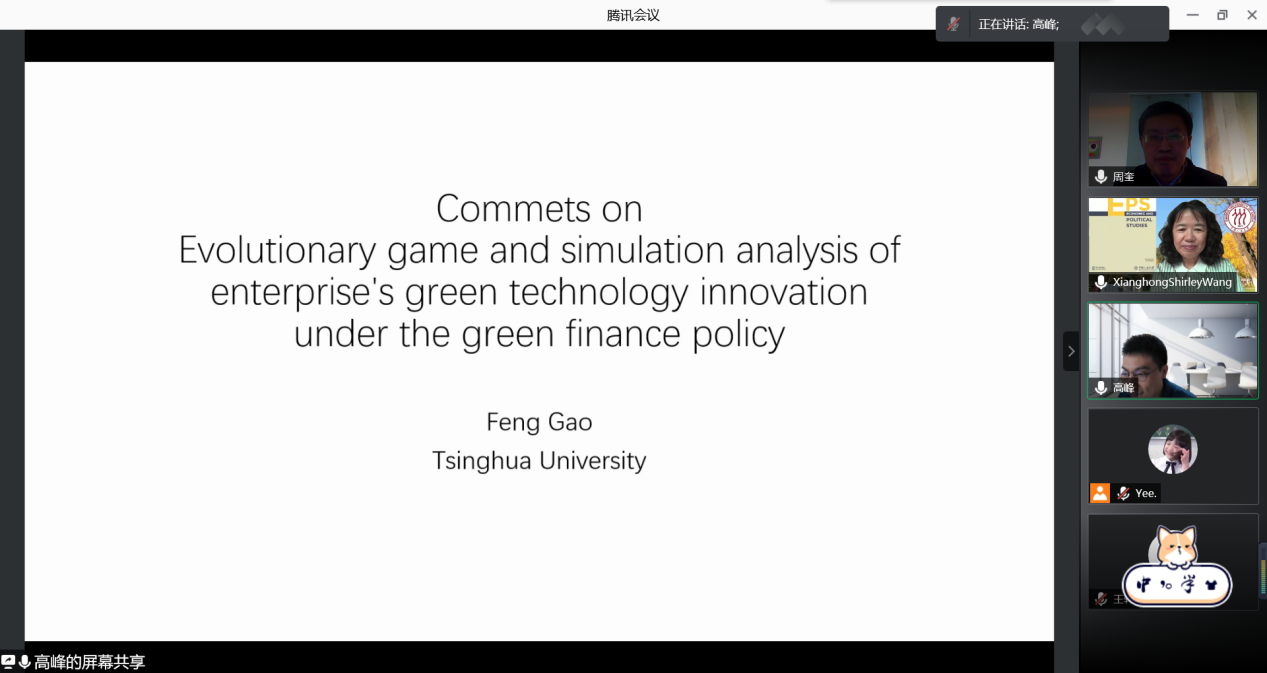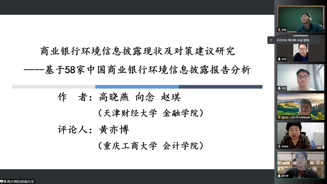 演讲结束后,分“绿色金融与‘双碳’目标实现”、“绿色政策与金融市场发展”、“绿色发展与低碳转型”等三个方向举行了线上论文工作坊,入选论文的作者相继对论文进行报告。论文工作坊一——“绿色金融与‘双碳’目标实现”由中国人民大学副教授邱志刚主持,复旦大学经济公司教授樊海潮对入选论文进行点评;论文工作坊二——“绿色政策与金融市场发展”由中国人民大学经济公司教授王湘红主持,清华大学经济管理公司金融系副教授高峰对入选论文进行点评;论文工作坊三——“绿色发展与低碳转型”由贵304永利集团官网入口学报编辑部副主任张领主持,中国人民大学副教授罗煜对入选论文进行点评。