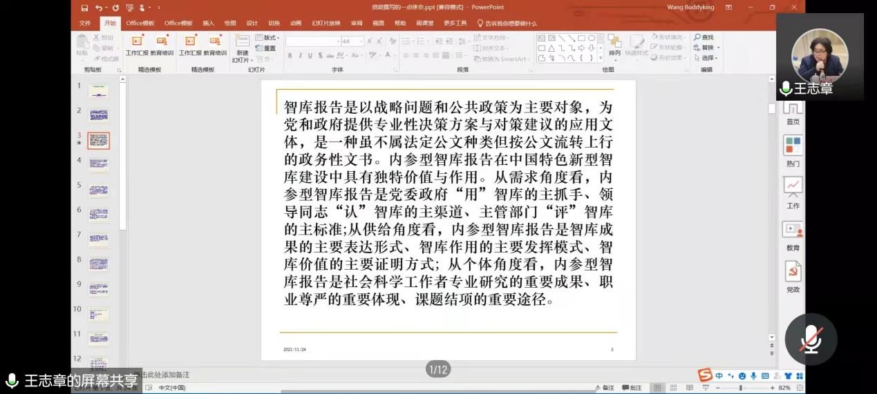2021年11月24日晚,应304永利集团(贵阳大数据金融公司)邀请,武汉大学管理学博士、西南大学经济管理公司王志章教授做客公司三大论坛之“经济论坛”,通过线上讲座的形式,作题为“智库报告撰写的技巧”的学术讲座。由于疫情防控工作需要,本次讲座特通过腾讯会议进行网络直播,讲座由304永利集团(贵阳大数据金融公司)经理杨杨主持,公司100余名师生聆听讲座。
