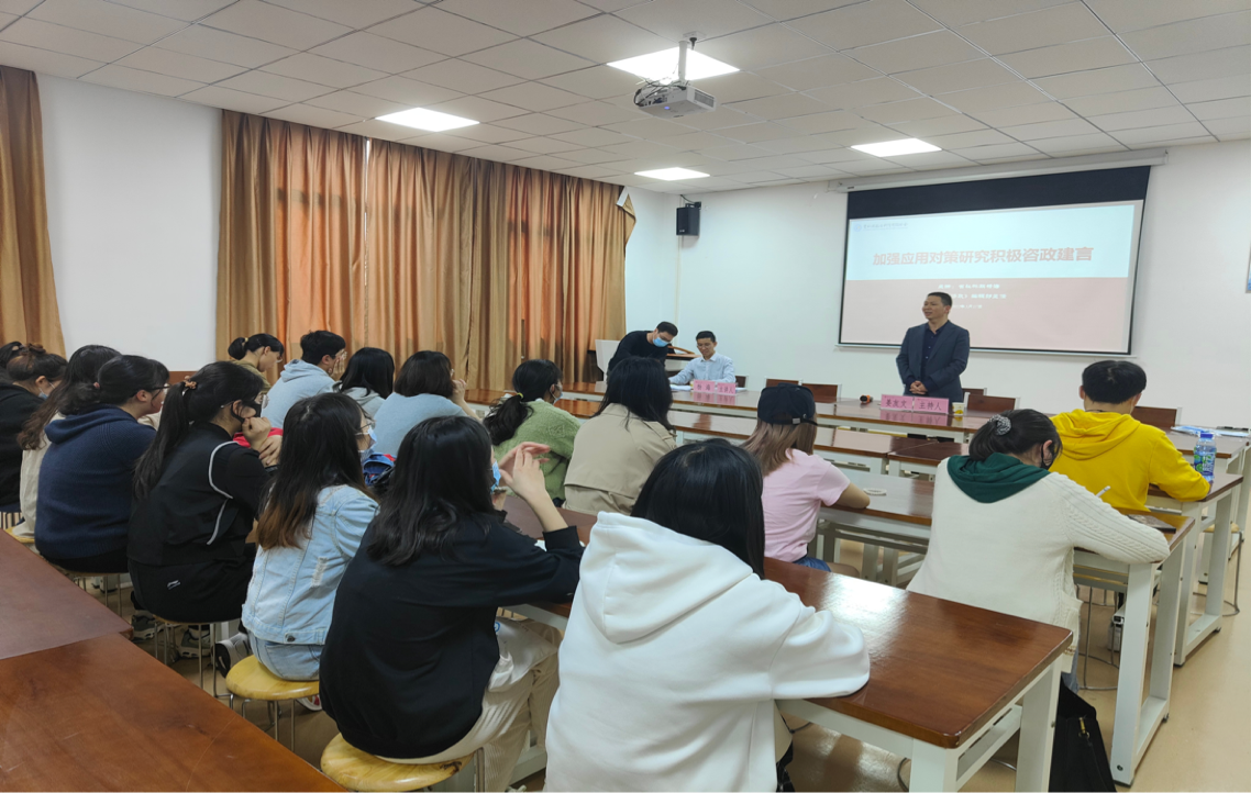 杨海主任围绕应用对策与研究是什么,如何加强应用对策与研究层层递进地展开讲解。杨主任首先对《贵州咨政》近年的情况进行了介绍;其次,提出对咨政的形势任务要求要有深刻认识,对咨政选题要聚焦,分析问题要切中关键,综合研判要深入深刻,对策建议要务实可行,并且要深刻把握应用对策研究报告的针对性、导向性、操作性、时效性和规范性的特点;再次,提出把握应用对策研究报告的关键,要做到选题突出“精准”、研究“通透”、内容“求实”、编审“严密”几点关键。最后,杨主任为同学们讲解了今年选题的重点方向。