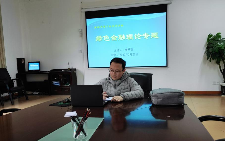 2022年3月27日下午,贵304永利集团官网入口304永利集团(贵阳大数据金融公司)金融专硕教育中心邀请黄明刚老师开展产业导师专题讲座活动,讲座主题为“绿色金融理论与实务”,讲座为线上形式。金融专硕硕导组组长韩田、副组长马新松和一百余名金融专硕员工参加此次讲座,讲座由马新松老师主持。