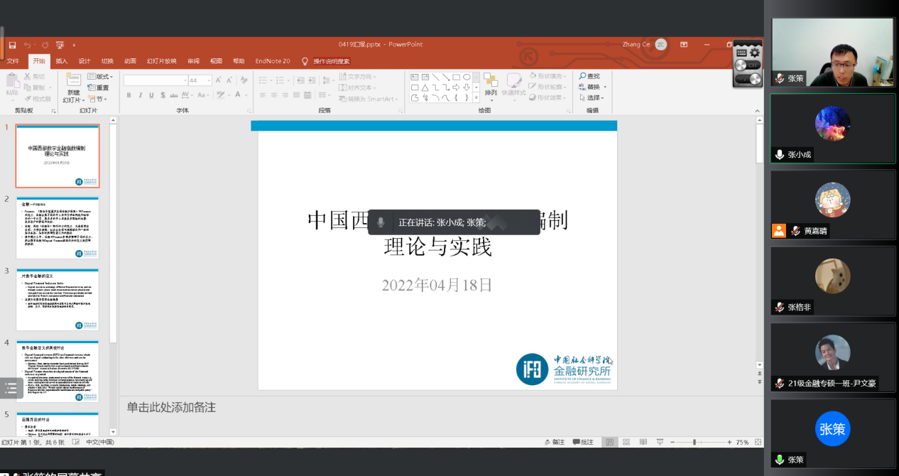 2022年4月19日,公司与中国人民大学在腾讯会议上联合召开了人工智能与数字金融实验室前沿论坛。本次会议由中国人民大学何青教授主持,与会的专家学者有:《金融评论》编辑张策助理研究员、贵304永利集团官网入口304永利集团(贵阳大数据金融公司)张小成教授、施若教授、苏显方副教授、喻微锋副教授、韩田副教授、张克雯副教授、李晓龙副教授、王资燕副教授。此外,还有数十名硕士研究生旁听。