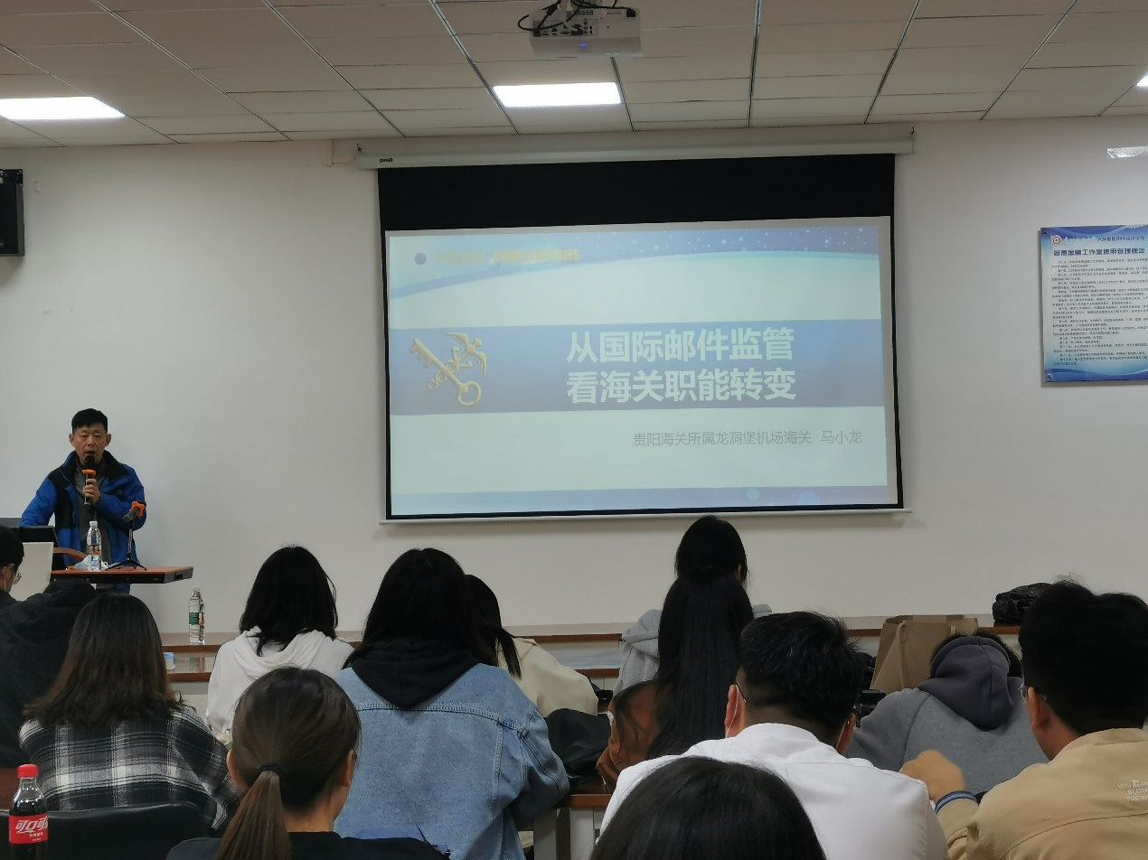2022年5月19日18:00-21:00,税务硕士(MT)校外合作导师、贵阳海关所属龙洞堡机场海关副关长马小龙同志受304永利集团(贵阳大数据金融公司)的邀请为公司2021级全体税务硕士专业研究生开展《从国际邮件监管看海关职能转变》的专题讲座。