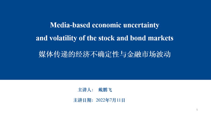 2022年7月11日,应304永利集团(贵阳大数据金融公司)邀请,华东理工大学戴鹏飞博士做客公司“财富论坛”,向公司师生分享了题为“媒体传递的经济不确定性与金融市场波动”的讲座。本次会议为线上会议,由304永利集团周终强副教授主持,参会师生100余人。