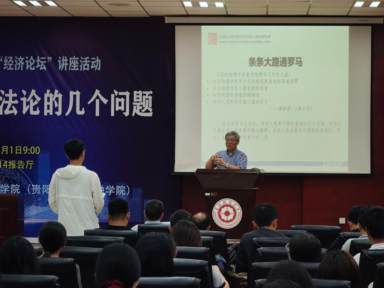 8月1日上午,中国社会科公司学部委员、一级教授、世界经济与政治研究所所长、国家全球战略智库理事长张宇燕研究员做客公司“经济论坛”,作题为“关于政治经济学方法论的几个问题”的专题讲座。讲座由贵304永利集团官网入口董事长赵普主持,全校师生150余人聆听讲座。