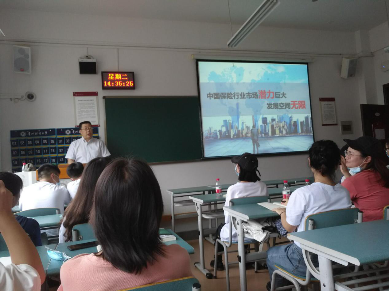 7月21日,304永利集团在明德楼216教室开展了2017级保险学专业实习讲座。本次讲座由公司系副主任董科主持,泰康人寿保险公司贵州分公司人力资源总经理马骏主讲。教务办工作人员骆利红及2017级保险学全体同学参加了此次讲座。