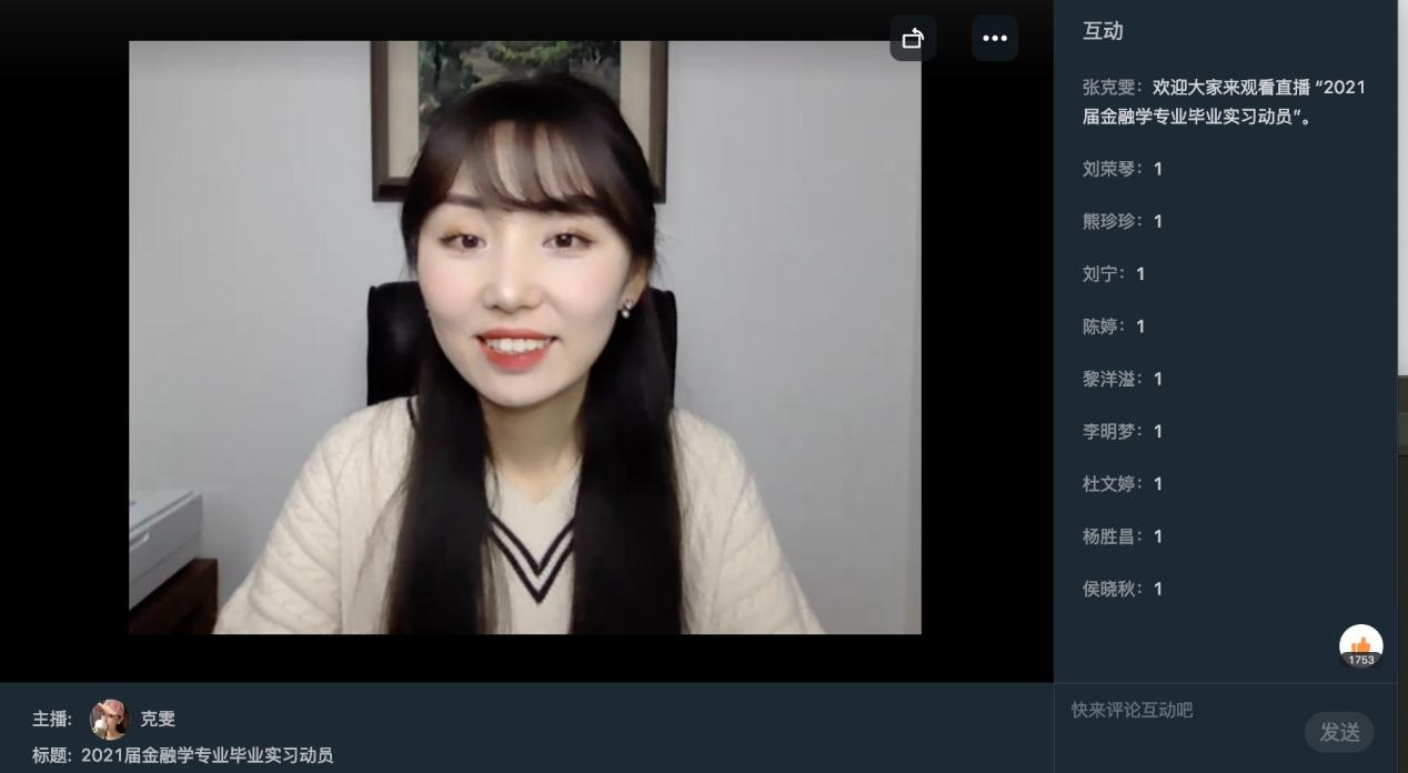 本次毕业实习考虑疫情防控要求和师生健康安全,结合金融专业特点等实际情况多元化组织开展本次毕业实习教学工作。在毕业实习动员中,张克雯副主任向2017级金融学专业员工介绍了毕业实习目的、实习方式、实习时间、实习内容等内容,特别强调了要在本次毕业实习中尽量融入“四史”(党史、新中国史、改革开放史、社会主义发展史)的内容。同时,还专门强调了疫情期间开展毕业实习的安全和健康问题。