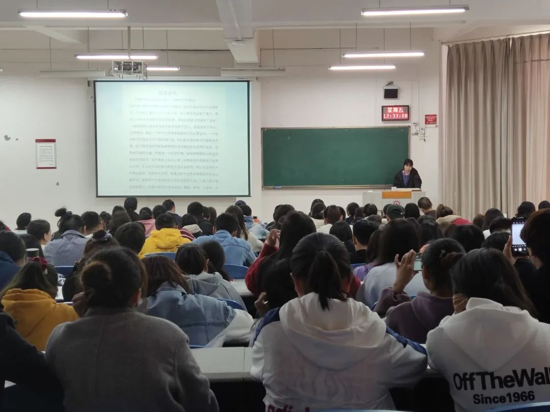 首先,易忠梅老师为同学们展示了不正确的入党申请书格式,重点分析了格式不规范,内容不全面、语句不通顺、错别字等错误。紧接着,易老师列举了行文不规范所造成的麻烦,使同学们对规范书写作的重要性更加了解,通过一个感人的小故事科普了文书写作的特点:口格式规范化,口层次逻辑化,语言书面化。团课最后,易老师做出了几点文学写作的建议,以便同学们运用于今后的写作当中。