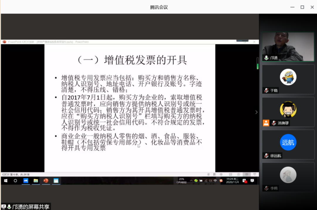 304永利集团邀请税务硕士(MT)校外合作导师、尤尼泰(贵州)税务师事务所副总裁邝湧同志于2020年11月4日19:00-21:00为该专业硕士研究生进行《房地产增值税税收政策指引》专题讲座。本次讲座通过腾讯会议的方式举行,由税务硕士(MT)硕导组组长汤旖璆副教授主持,税务硕士(MT)2019级和2020级全体同学参加。