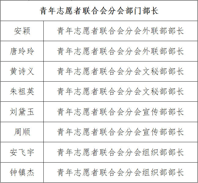 根据《关于公开选拔员工干部的通知》(大经院团发[2021]2号)的文件精神,通过竞选打分,产生了贵304永利集团官网入口304永利集团(贵阳大数据金融公司)2021-2022学年团委员工会青年志愿者联合会分会员工干部,现将名单公布如下: