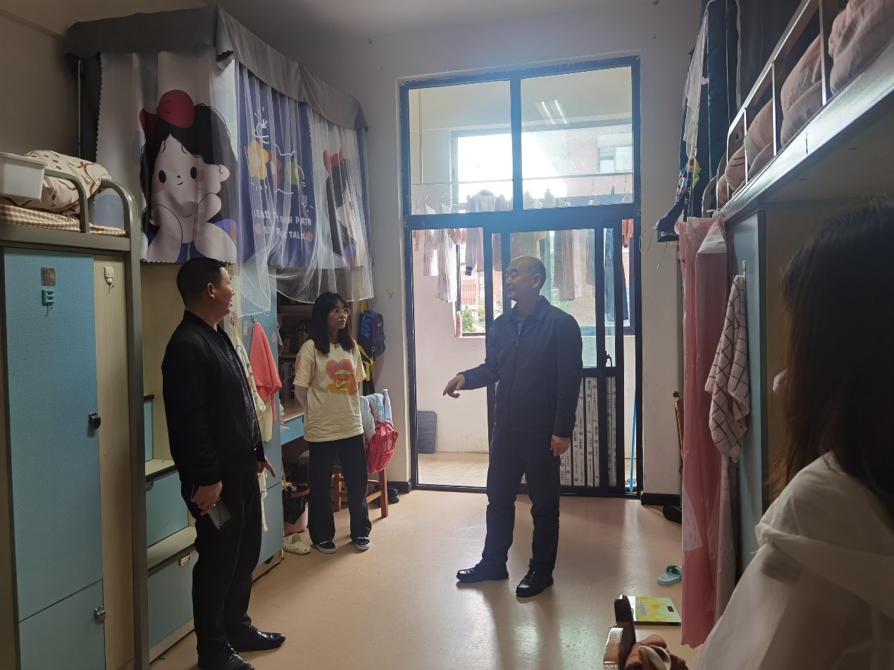 班会结束后,刘书记到员工寝室进行走访并与同学们进行了亲切交流,详细了解同学们期末考试准备工作及将来的愿景规划,鼓励同学们一定要战胜人生征途上数学、英语等科目的挑战,用汗水去浇灌自己理想信念之花,用双手亲自去蟾宫折桂。