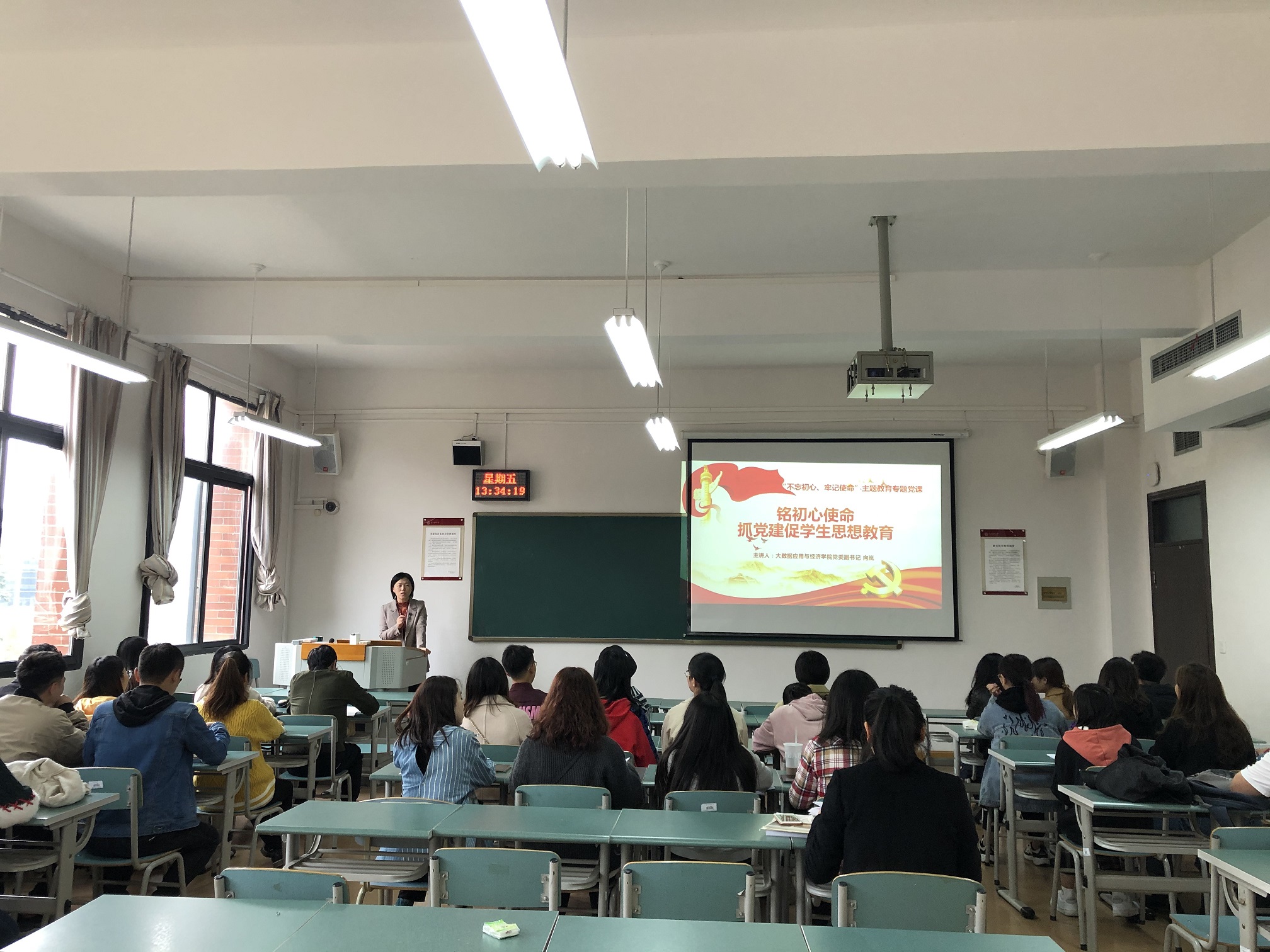 11月8日,在明德楼319教室,公司党委副书记向岚为研究生第一党支部、本科员工第四党支部全体党员上题为《铭初心使命,抓党建促员工思想教育》专题党课。