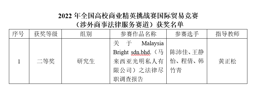 12月5日,全国高校商业精英挑战赛组委会公布了2022年全国高校商业精英挑战赛国际贸易竞赛(RCEP国际市场开拓策划赛道、国际贸易与商务专题赛道及涉外商事法律服务赛道)获奖名单。全国高校商业精英挑战赛是由中国国际贸易促进委员会商业行业委员会(简称“中国贸促会商业行业委员会”)牵头主办的国家级学科竞赛活动,已成为我国国际经贸教育领域基于校企合作规模最大的综合实践平台和学科竞赛活动。
