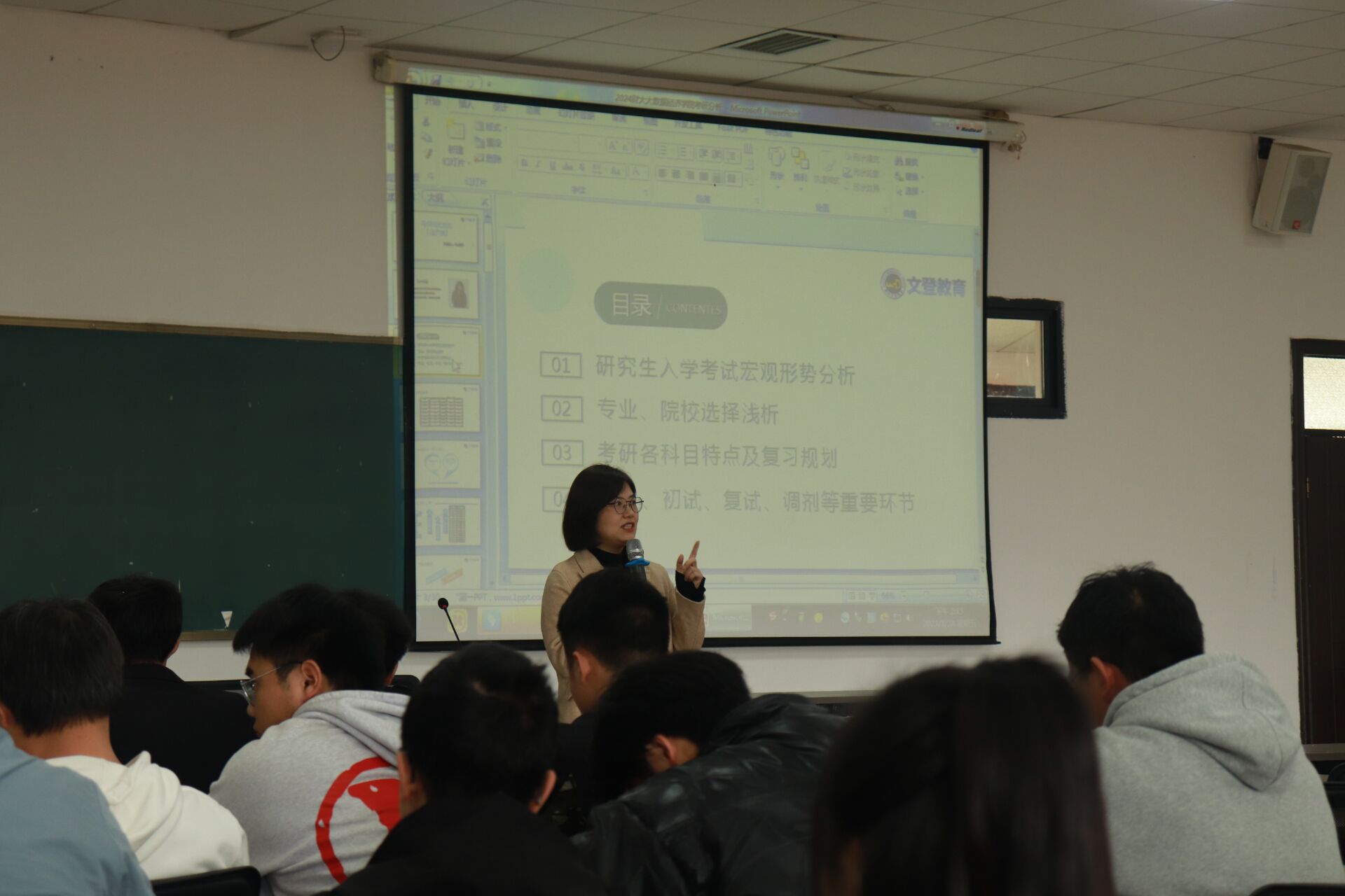 韩田老师向2020级金融学类的同学分析了研究生入学考试的宏观形和专业、院校的选择;而后又介绍了考研各个科目的特点以及复习规划以及上线后初试、复试、调剂等重要环节。与此同时,同学们也积极向韩田老师提出自己在考研方面的疑问,韩田老师也一一给予回复,解决大家的问题。