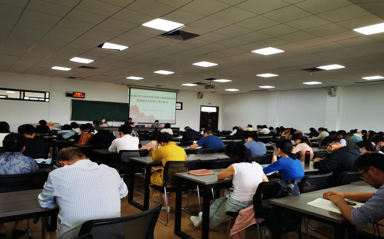 5月16日下午,在明德楼五楼会议室,304永利集团(贵阳大数据金融公司)召开师德师风专项教育培训会。党委书记姜友文教授紧密结合习近平总书记关于教育工作的有关论述,尤其是对高校师德师风的重要论述,重点解读学习了《关于加强和改进新时代师德师风建设的意见》、《高等公司预防与处理学术不端行为办法》和《新时代高校教师职业行为十项准则》等有关规定,深刻理解好的师德师风给公司教书育人带来的重要作用,倡导公司广大教师树立良好的师德师风,警醒公司老师要守住底线、不触“红线”,努力做一个“有理想信念、有道德情操、有扎实学识、有仁爱之心”的高校“四有好老师”。