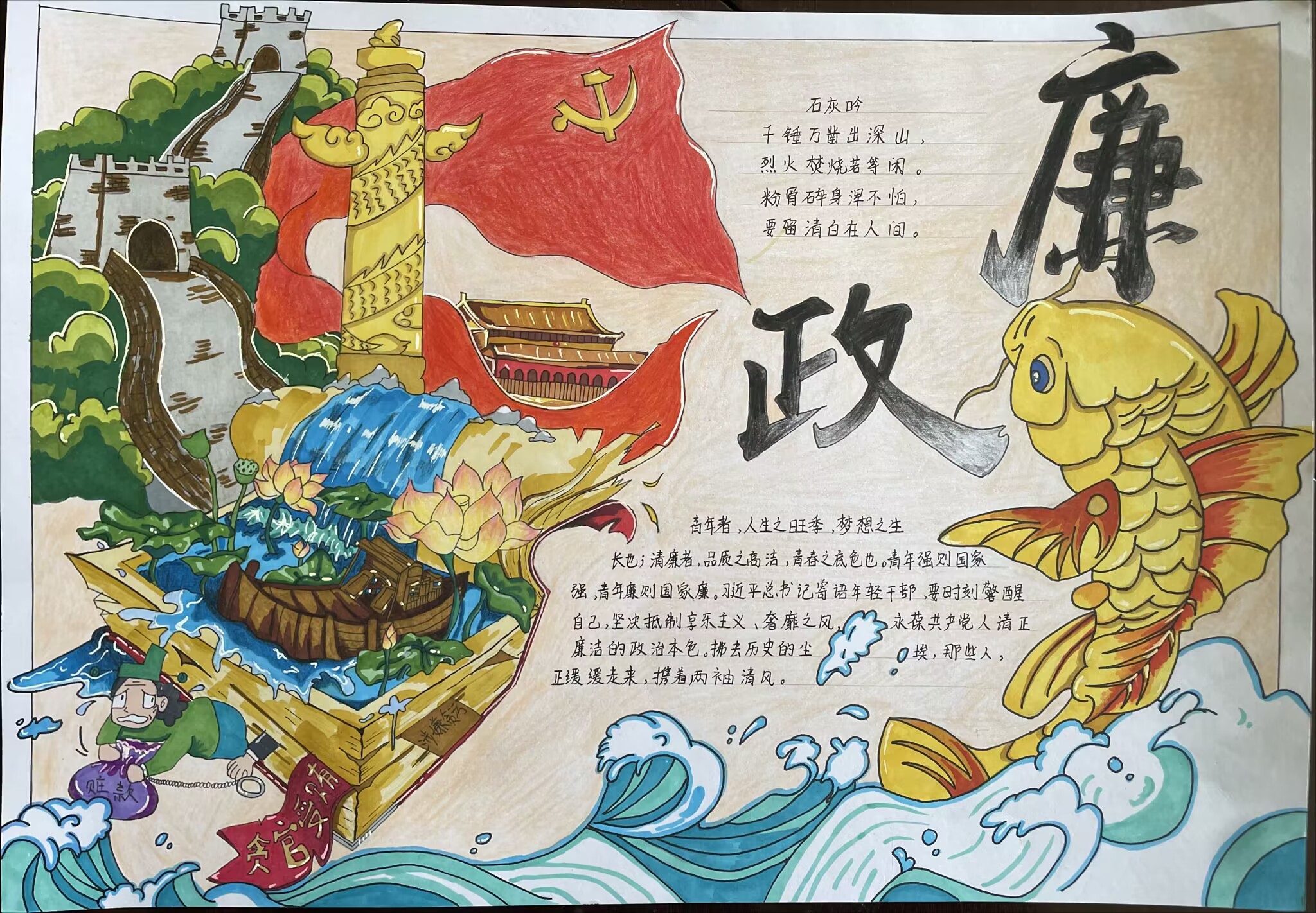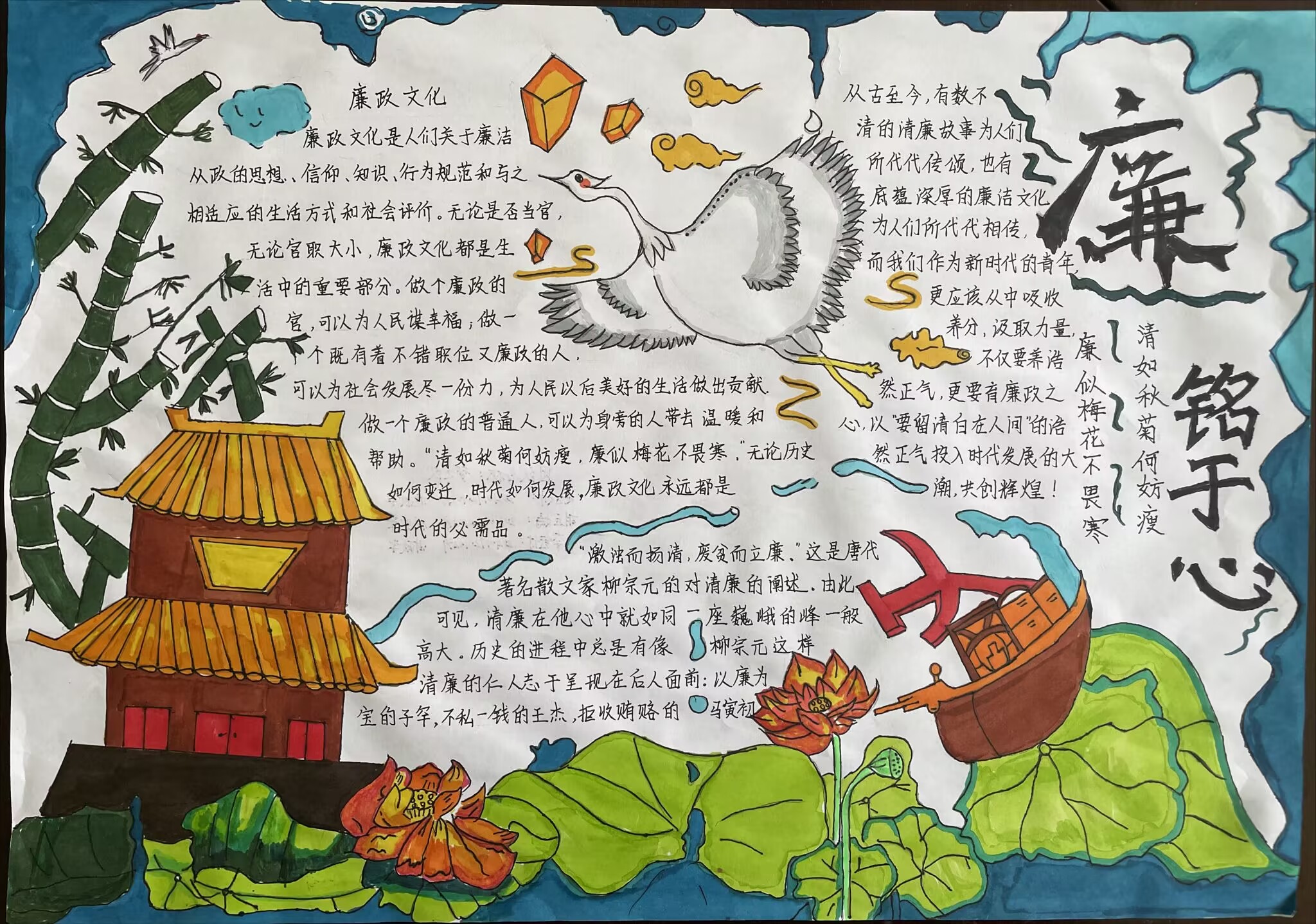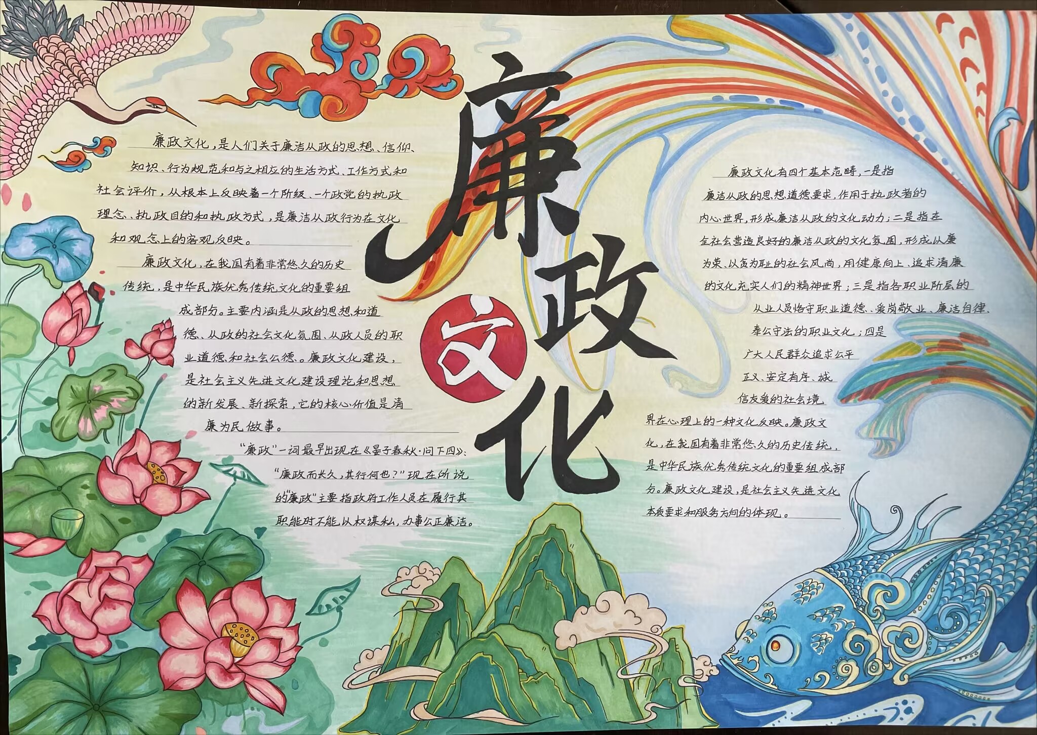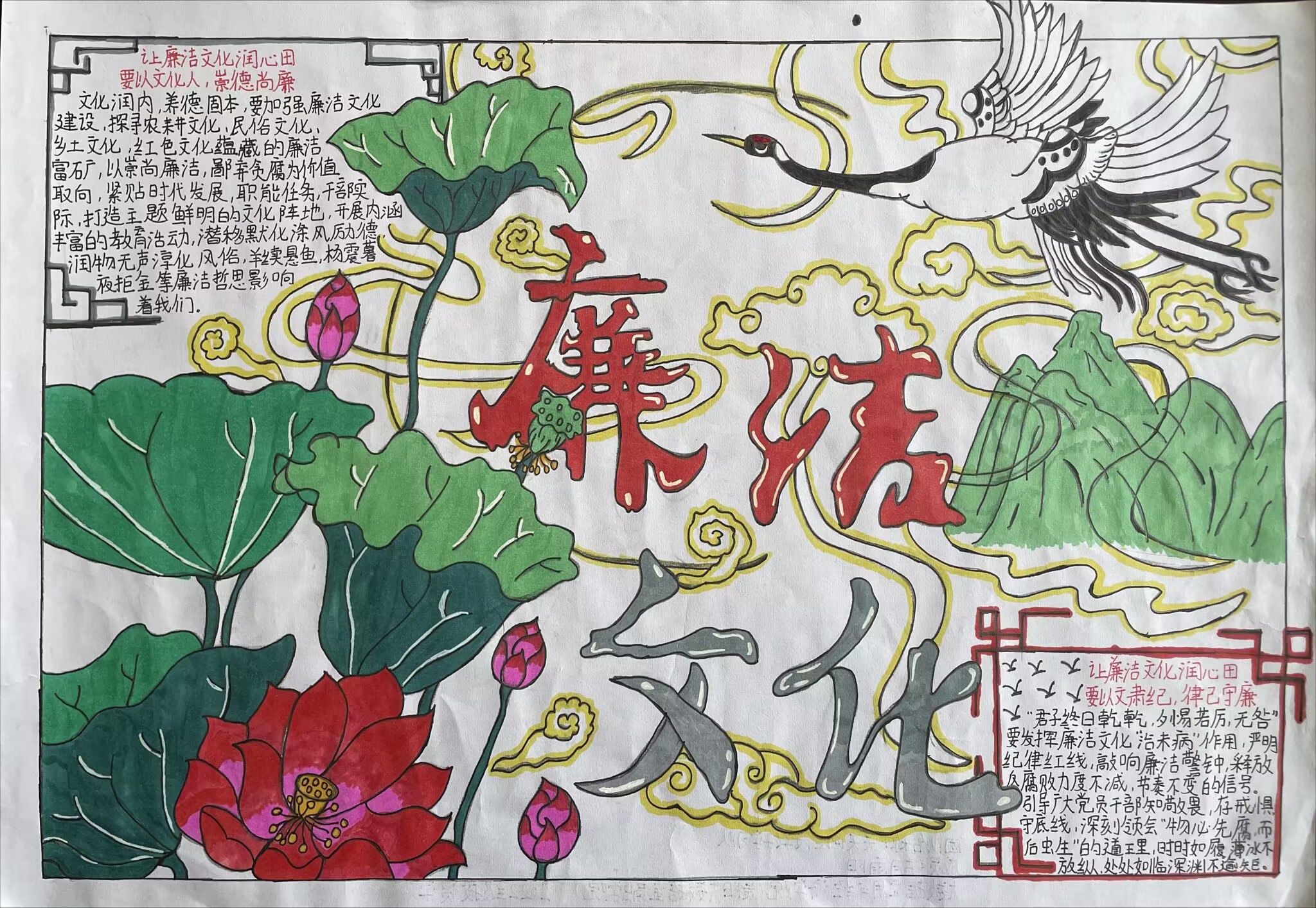 通过此次活动,不仅提升了广大师生对廉政文化的认知,更重要的是通过手抄报这种的形式,让广大师生深入思考,进一步树立了纯洁爱国、诚实守信、勤俭节约的正确价值观和道德观。