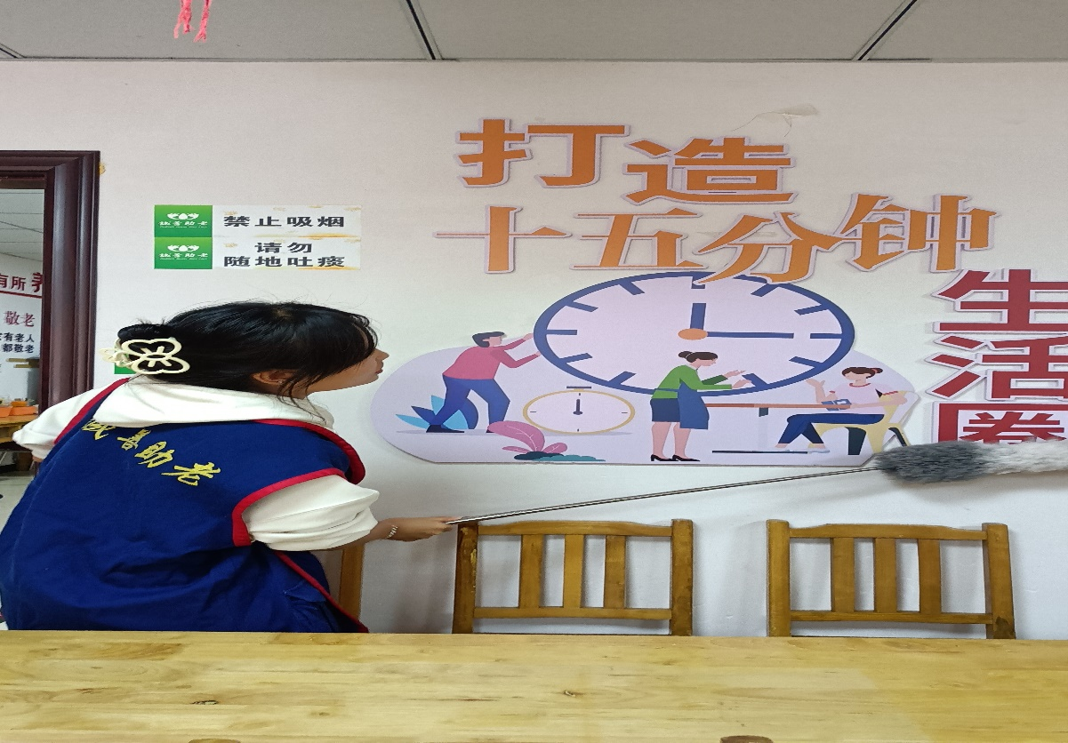 在“诚善助老助残”活动中,团员青年们在花溪区桐木岭清溪街南溪苑易地扶贫安置点开展全面清洁打扫、午餐备餐、餐前准备以及餐后清洁等志愿服务工作,了解老人们的基本情况,倾听老人们的心声,聊聊家常。