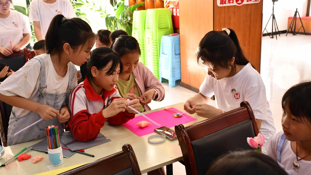 为了让社区青少年安全、快乐度过暑期,实践队为社区青少年进行了防溺水安全教育。为了丰富社区小朋友的童年,在实践队员的指导下社区儿童用扭扭棒、粘土、卡纸等材料制作各具特色的作品。