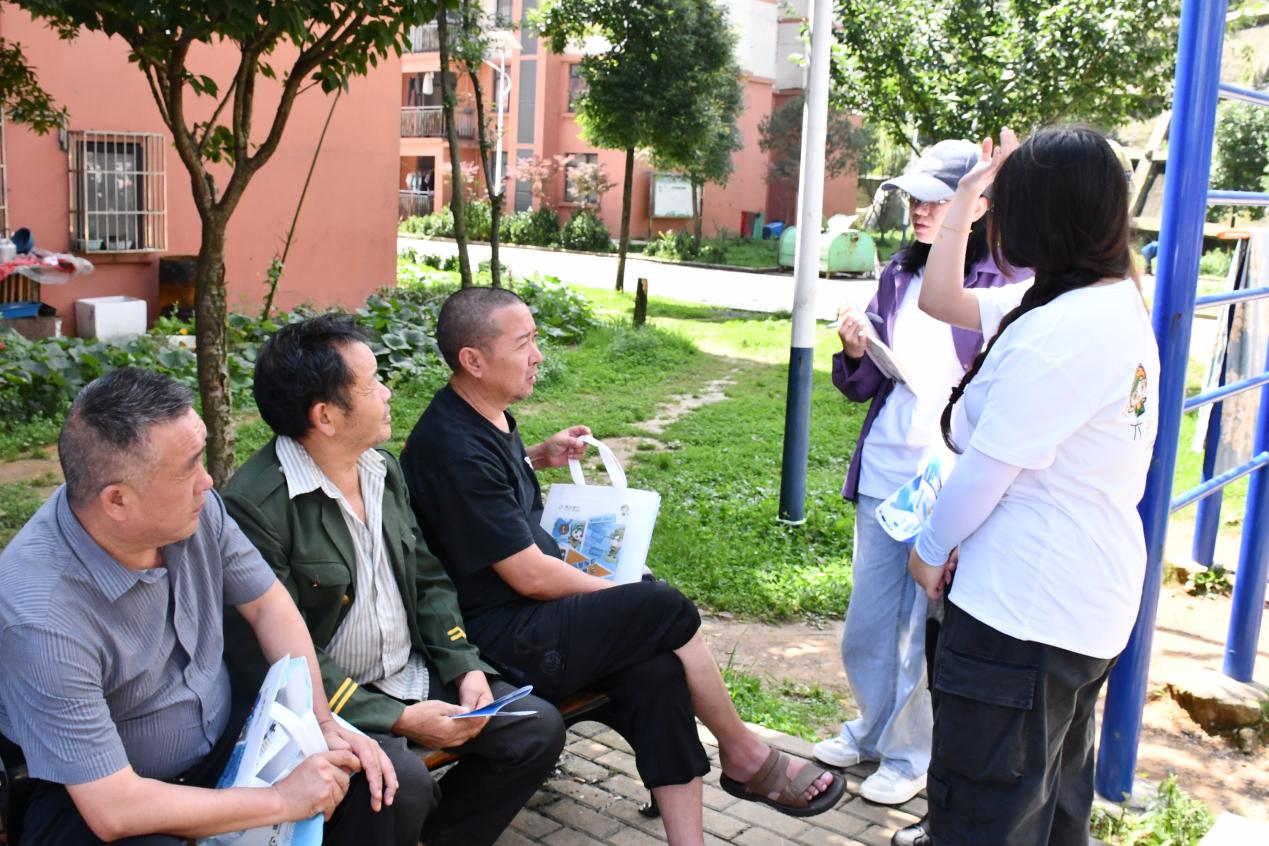 在枫渔社区,实践队到群众中去,同居民交谈,了解居民搬迁后的生活状况;向居民们宣讲党的政策、思想,丰富居民精神世界;为中老年人宣传反诈知识,呼吁居民携手防诈、反诈。