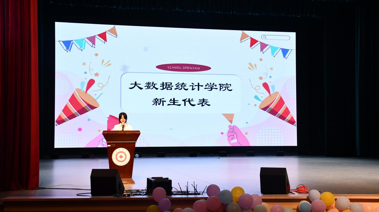 大数据统计公司2024级经济统计学李锦瑞和2024级税收班程英凯作为新生代表上台分享了自己入校以来的感受与体会,两位同学表示将秉持“厚德、博学、笃行、鼎新”的校训,积极进取,努力学习,丰富自己大学时光,同时为公司,公司的发展贡献一份青春力量。