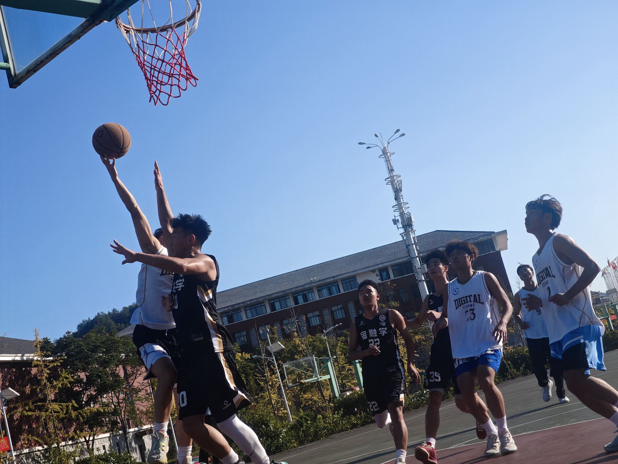 比赛过程中,球员们不仅展现出了出色的个人能力,更体现了团队合作的精神。他们相互配合、相互信任,为了共同的目标而拼搏。每一次的得分都凝聚着团队的智慧和努力,每一次的防守都彰显着顽强的斗志。在紧张的半决赛场上,22级投资学班成功拿下季军。激烈争夺冠军的决赛场上,21级金融学班对战24级数字经济班,最终,21级金融学夺得冠军,24级数字经济夺得亚军。在女生组的比赛中,23级金融学脱颖而出,成功拿下冠军。