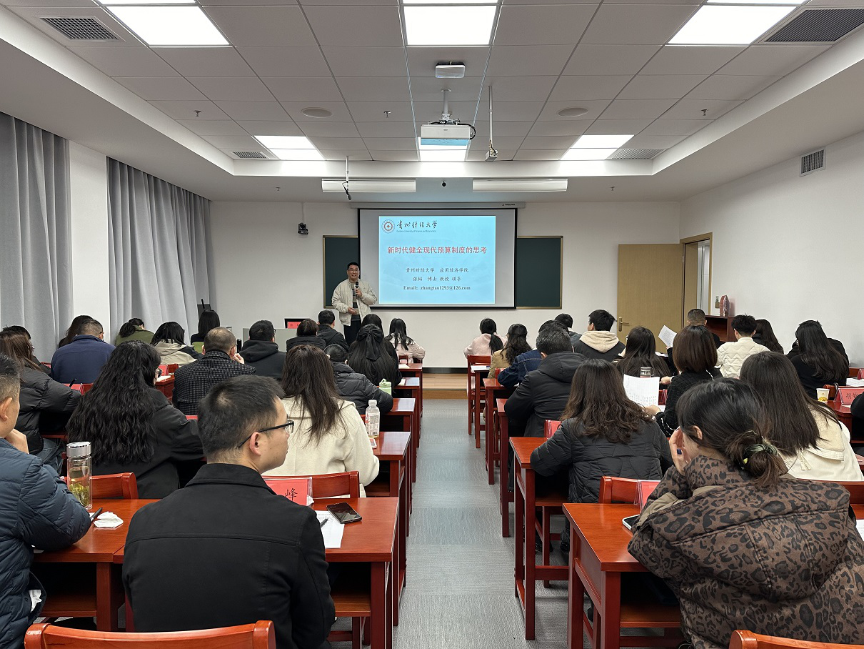 2024年11月27日,公司财税系张韬教授受邀赴中共贵州省委党校,为安顺市基层财政干部作了关于“新时代健全现代预算制度的思考”的专题培训讲座,安顺市及所辖区县财政局各科(室)共52名工作人员参加。