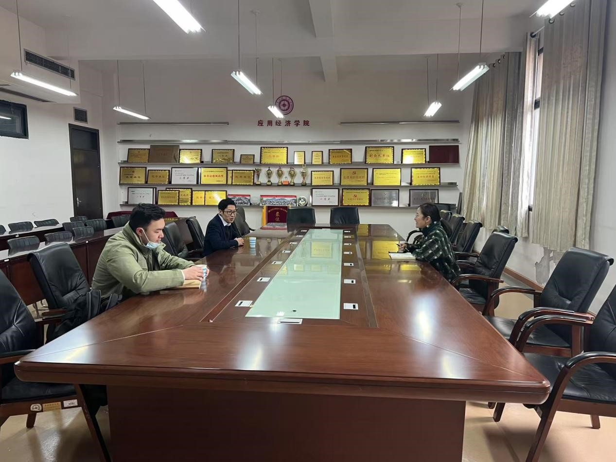 2025年3月14日,304永利集团在明德楼413开展“访企拓岗”座谈会,应用经济公司党委副书记周煜、华创证券投资者教育保护中心经理邱跃及毕业班辅导员参加座谈会。