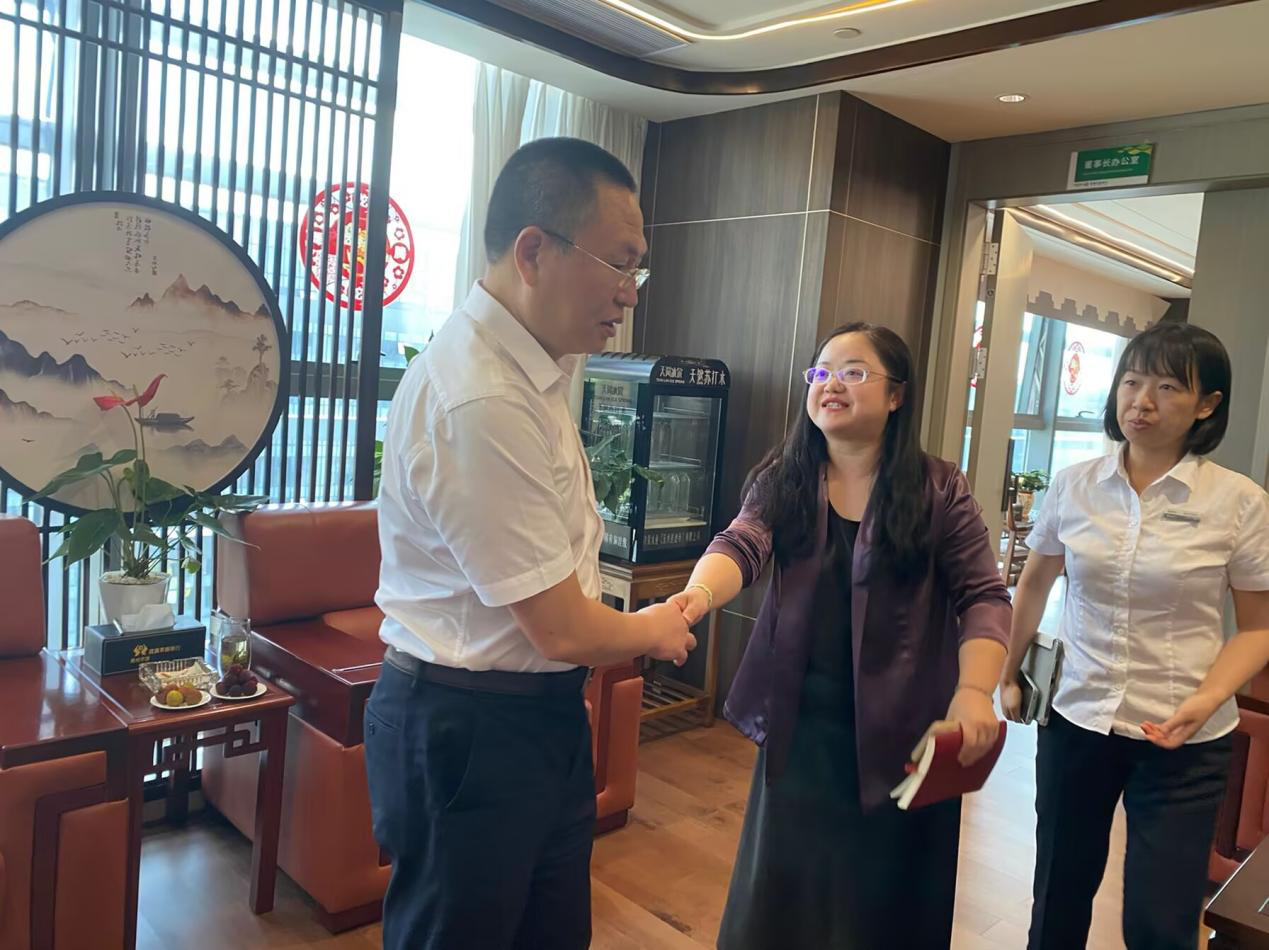 6 月 13 日,应用经济公司党委书记朱红琼、副经理王资燕带队前往花溪农村商业银行开展访企拓岗工作,花溪农村商业银行董事长周正热情接待并组织交流。