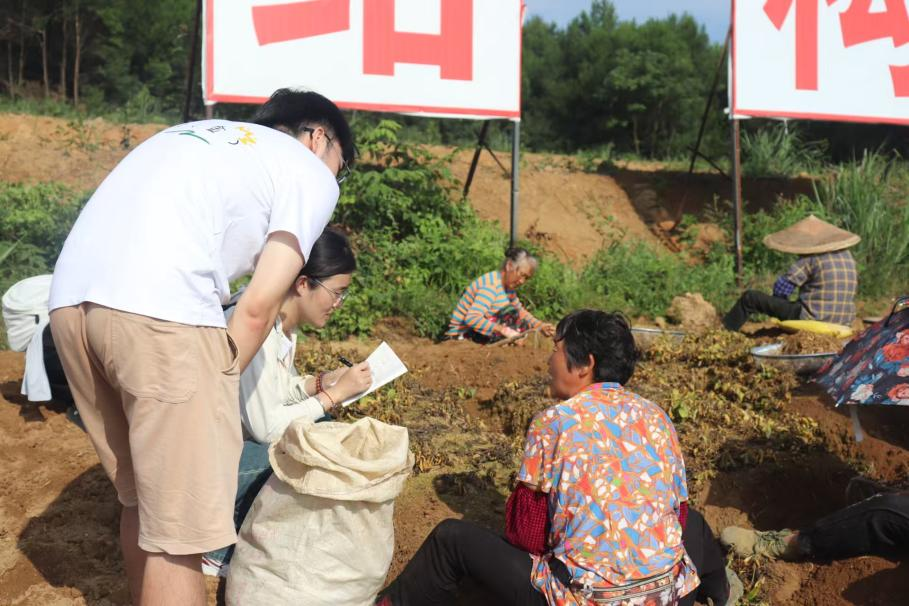 队员们通过调研了解到,每天清晨八点起,从周边村寨赶来的务工人员和收购商家就有1000余人,田间地头、收购点前热闹非凡,一派丰收忙碌的景象。“每天天不亮就来,能干到傍晚六点,一天下来能收六七十斤,多的能上百斤,按2元一斤算,多干多得!家门口挣钱,还能照看老人孩子,比出去打工舒心多啦!”正在分拣太子参的李大姐手里不停,嗓门洪亮说道。