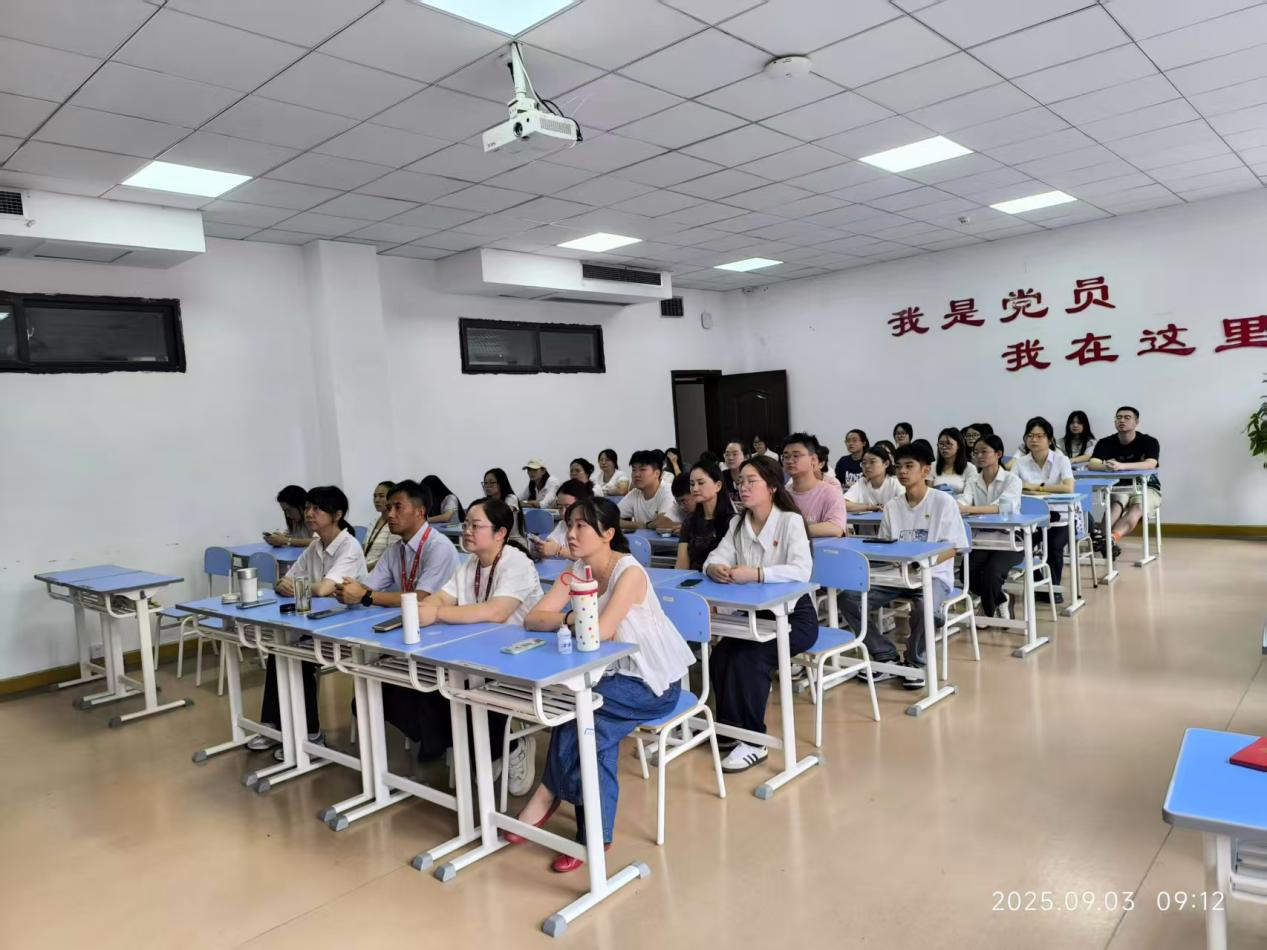 在场全体成员全神贯注地注视着屏幕,当整齐划一的方阵、先进精良的装备依次通过天安门广场时,教室里不时响起阵阵掌声。大家被阅兵仪式的庄严氛围和强大气势所感染,深刻感受到了中国军队的威武强大和国家的繁荣昌盛。大家纷纷表示通过观看阅兵仪式,更加深刻地感受到了中国人民抗日战争的伟大胜利来之不易,也更加坚定了自身的理想信念和爱国情怀。