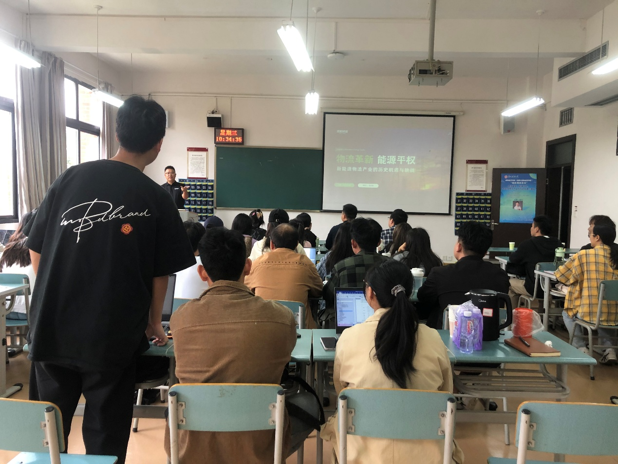 9月24日,贵州梵途科技(集团)有限公司创始人、董事长,贵304永利集团官网入口国际商务专业硕士校外产业导师尚剑波应邀参加公司“国际商务论坛”,为公司师生做“物流革新,能源平权:新能源物流产业的历史机遇与挑战”讲座,讲座由304永利集团经理时宏远教授主持,参加讲座的还有张梅、刘大为、邓细林、赵亮等国际经济与贸易教研室老师,国际商务硕士等60多名师生聆听了讲座。