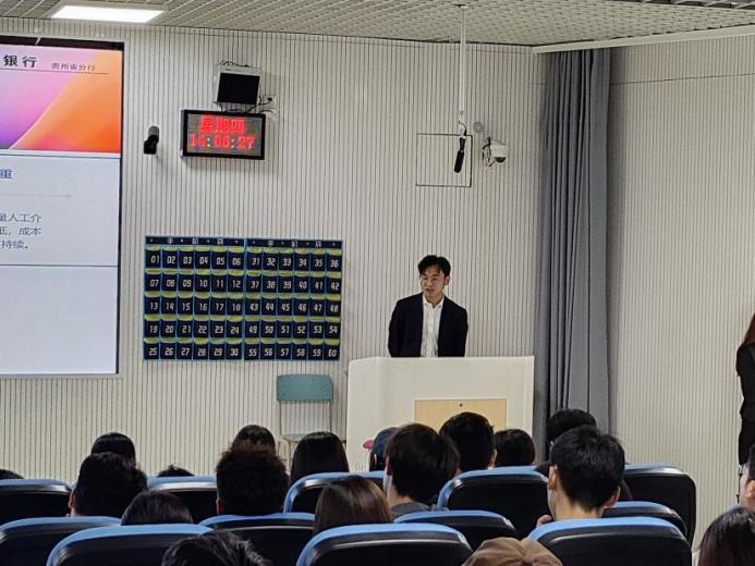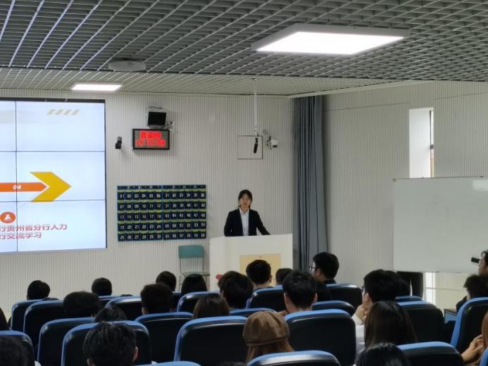 9月25日下午,公司联合中国工商银行贵州省分行在进学楼302报告厅成功举办了第十六届“工行杯”全国老员工金融科技创新大赛宣讲会。本次宣讲会特邀中国工商银行贵州省分行三位优秀代表担任主讲嘉宾,吸引全校100余名同学现场参会。