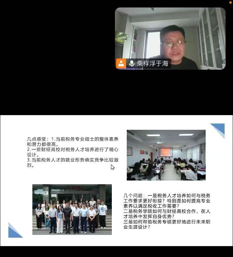 在讲座总结环节,黄江玉老师首先对武靖国老师的精彩分享致以诚挚谢意,并深入解析了公司税务专硕的培养模式。双方均表达了深化合作、携手共育高素质税务人才的共同意愿。此次讲座有助于员工明晰职业规划、学术写作规范,并为其规划研究生阶段的科研能力提升路径提供了系统指导。